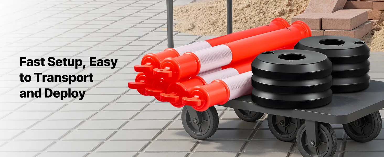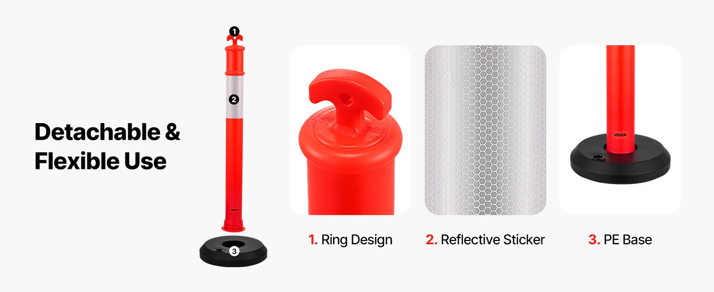 The delineator posts feature bright colors and 360°reflective strips design, ensuring enhanced security for nighttime road warnings. Its detachable design allows for easy storage in emergency vehicles or for large-scale transportation, making it readily accessible when needed.