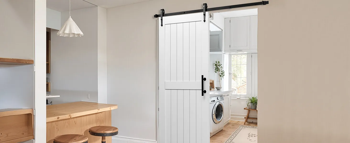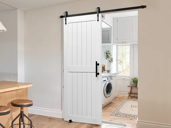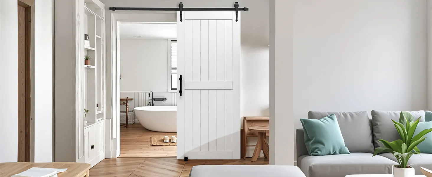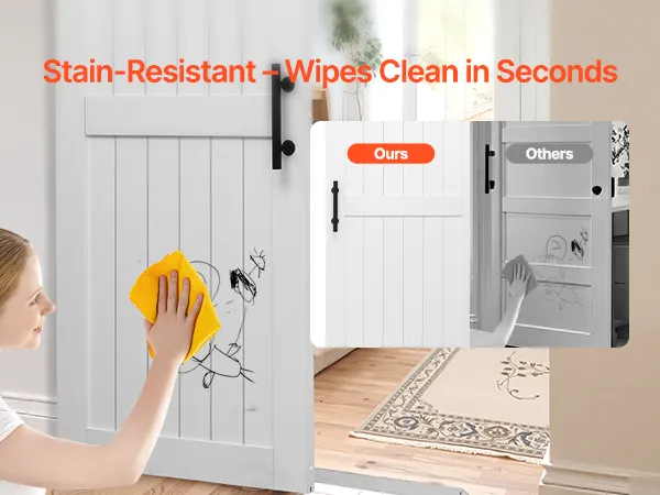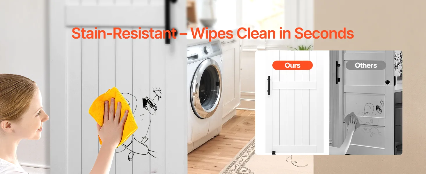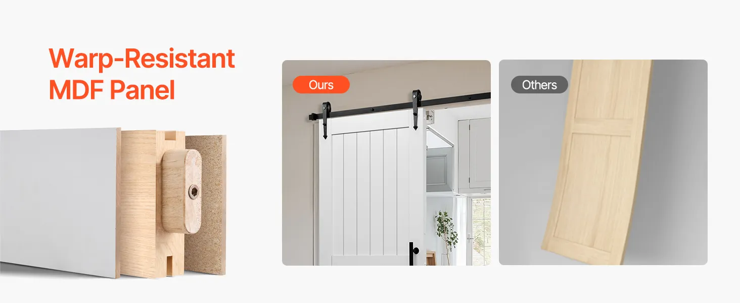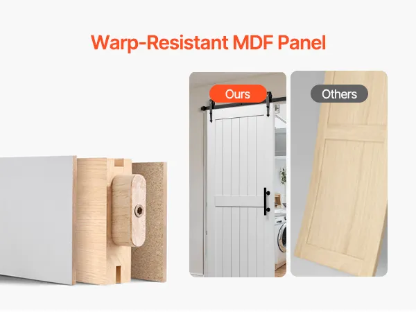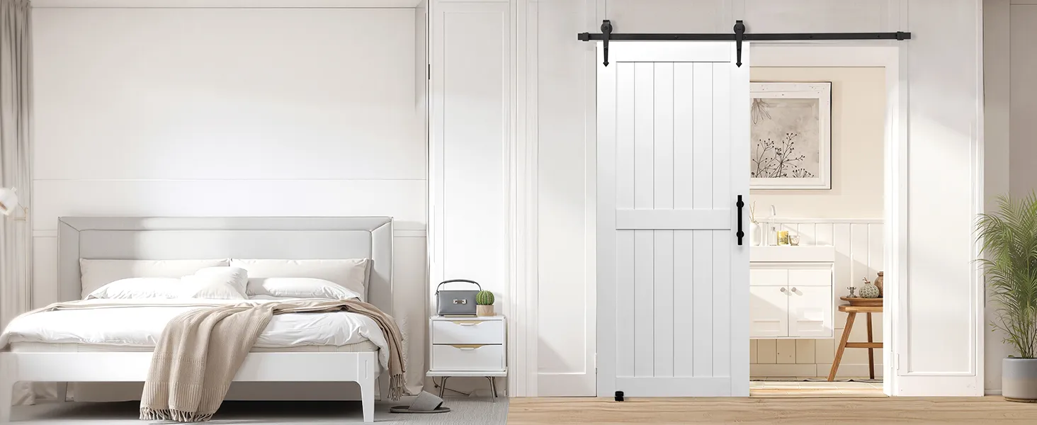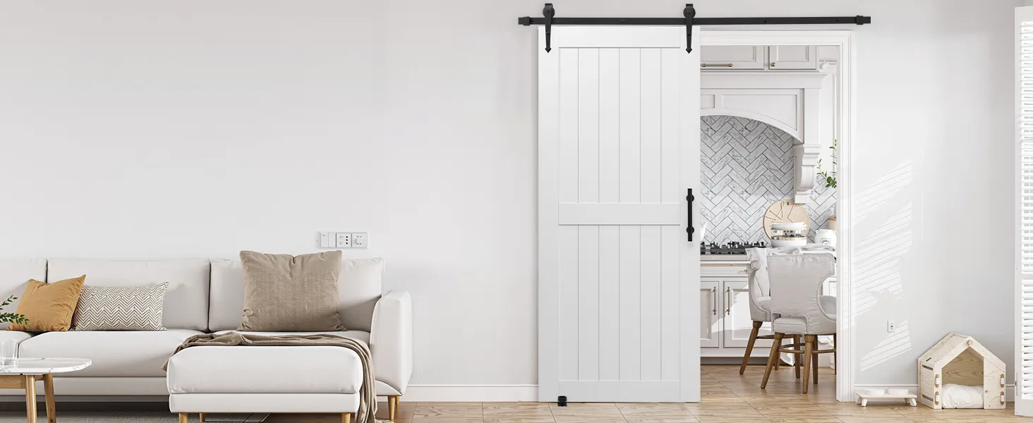Классический белый тон легко дополняет любой стиль декора. Раздвижная дверь амбара, изготовленная из прочного материала МДФ и уникальной конструкции, предотвращающей деформацию, обеспечивает долговечную устойчивость. Его водонепроницаемая поверхность, устойчивая к царапинам, упрощает обслуживание. Он идеально подходит для занятых домашних хозяйств.
