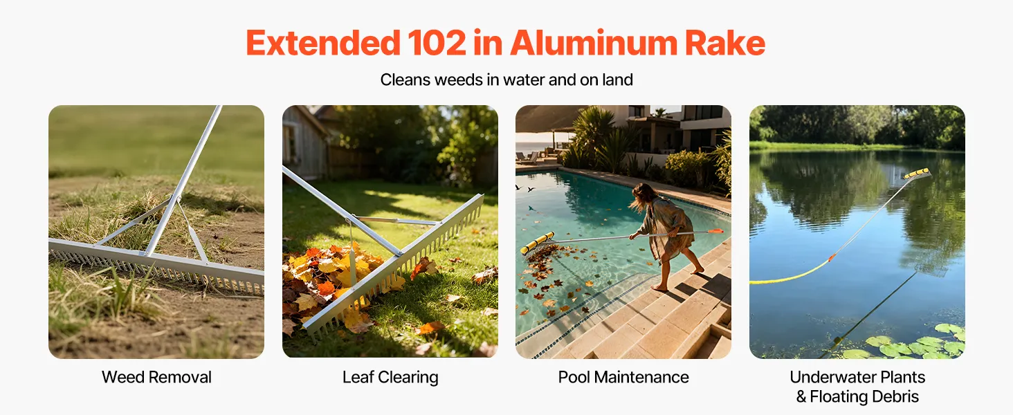 • Versatile Use: This multi-purpose landscape rake is ideal for clearing leaves, pond or pool debris, and floating weeds, making outdoor cleaning tasks effortless and efficient