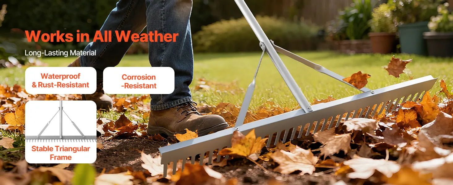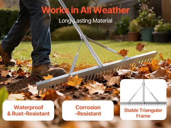 • Lightweight & Long-Lasting: Our lawn rake has an aluminum alloy handle and head—lightweight, rust-resistant, scratch-resistant, wear-resistant, non-bending, and crack-resistant for lasting outdoor use. Its smooth, deburred surface ensures reliable usage