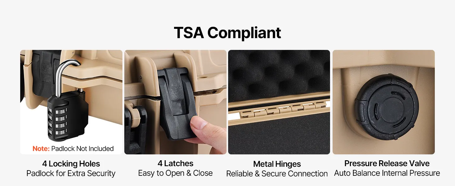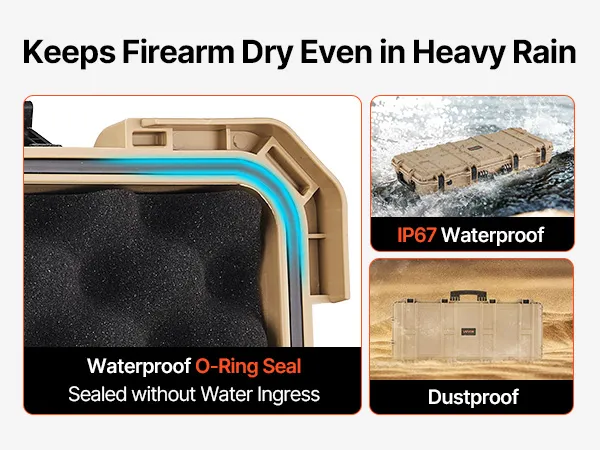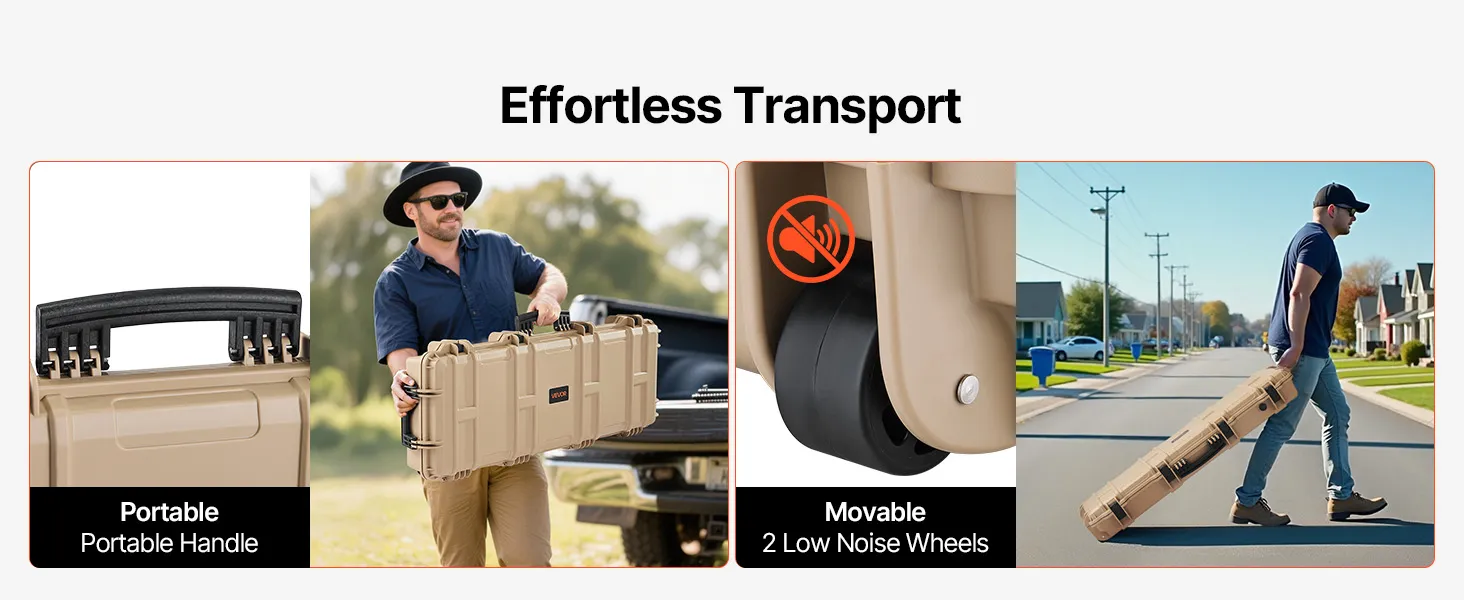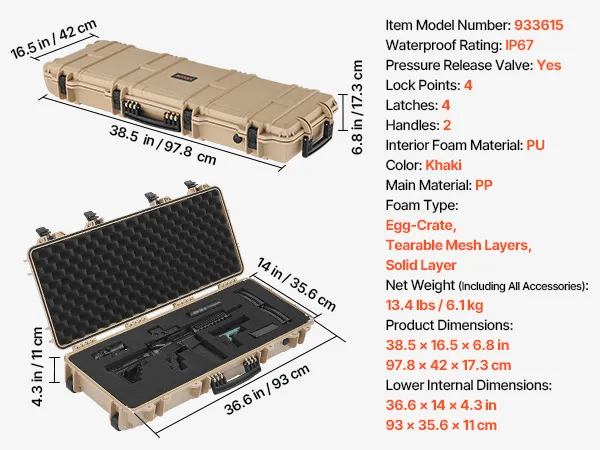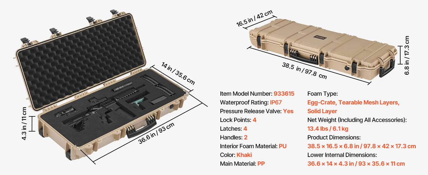 VEVOR Hard Rifle Case, Lockable Rifle Case with 4 Layers Pre-cut Foams, 914 mm Gun Storage with Wheels, IP67 Waterproof & Dustproof Pistol Storage Cases for Rifles, Shotguns, Airsoft Guns, Khaki