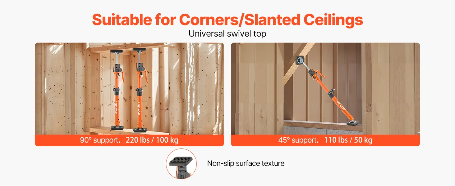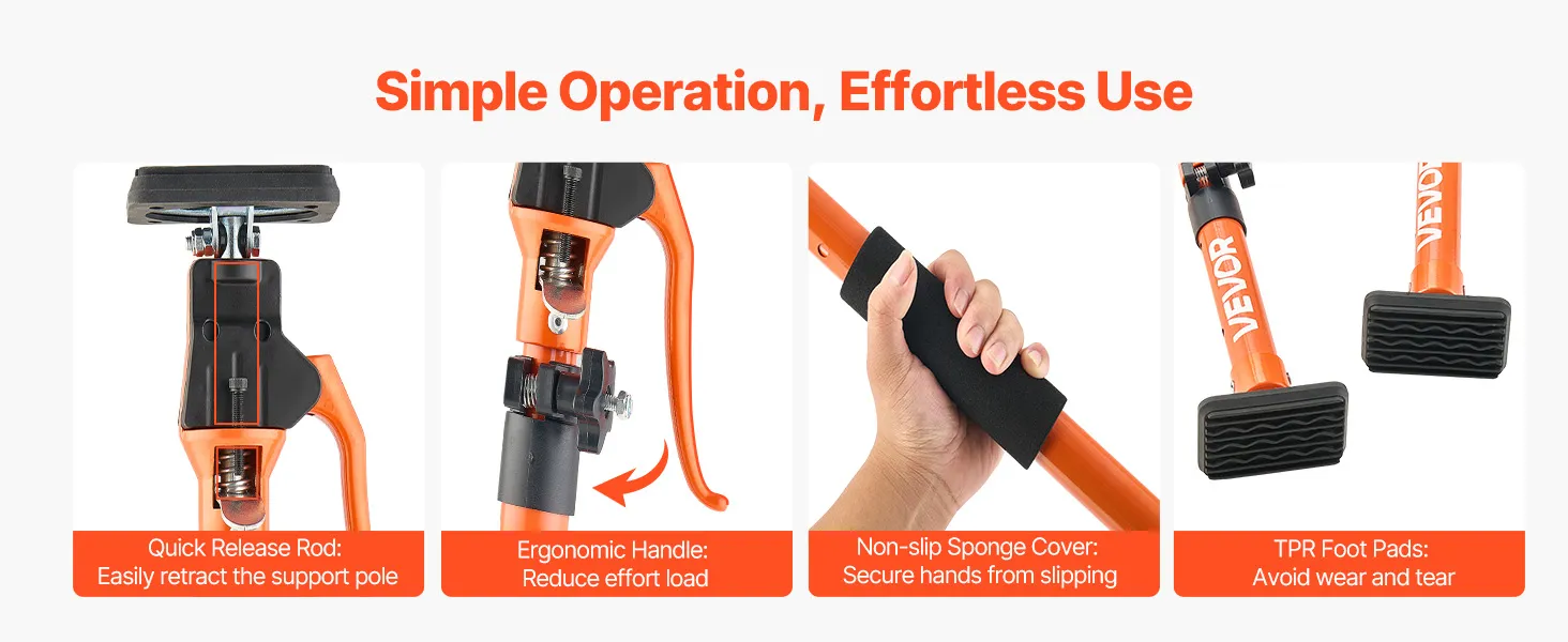 This 2-pack cabinet jack support pole set delivers efficient load support for jobsites, warehouses, and home projects. With a 220 lbs load capacity, adjustable height, and secure lock-in design, it's ideal for lifting or holding cabinets, drywall, and more.