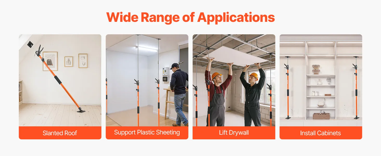 Fit for drywall bracing, plastic sheeting, cabinet installation, and panel holding. Reliable support boosts efficiency in professional construction and home improvement projects.