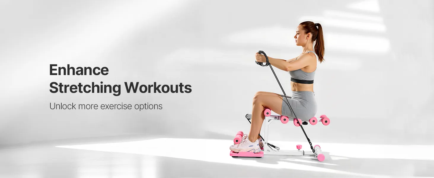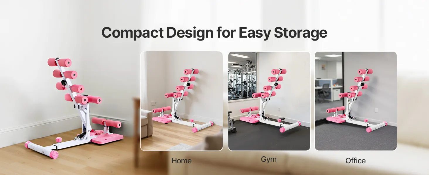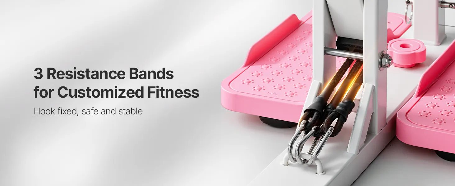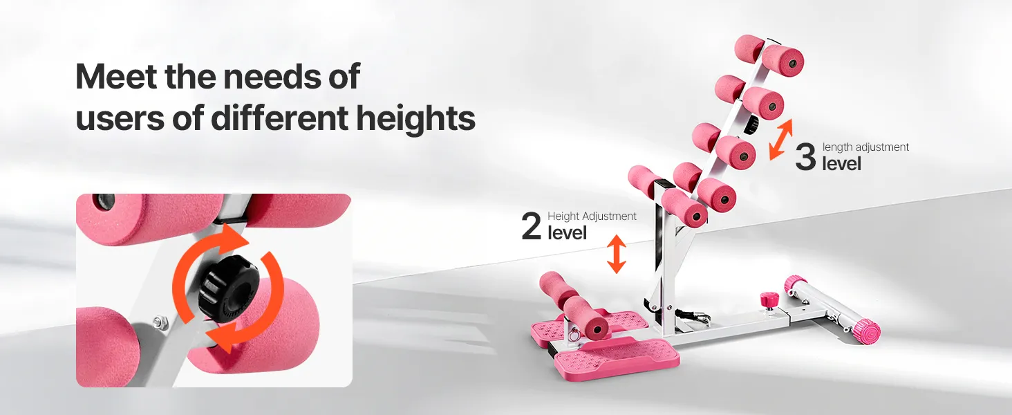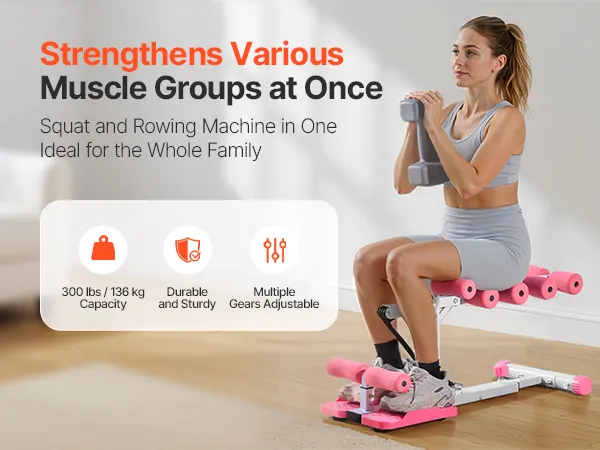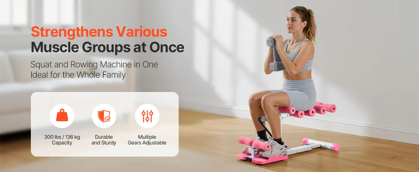 VEVOR Deep Squat Machine, Adjustable Glutes Trainer Machine with 3 High-Strength Resistance Bands, Folding Core Leg & Glutes Exercise Trainer, Push Up Workout Equipment at Home Gym, Pink + White