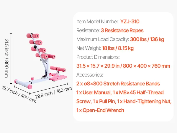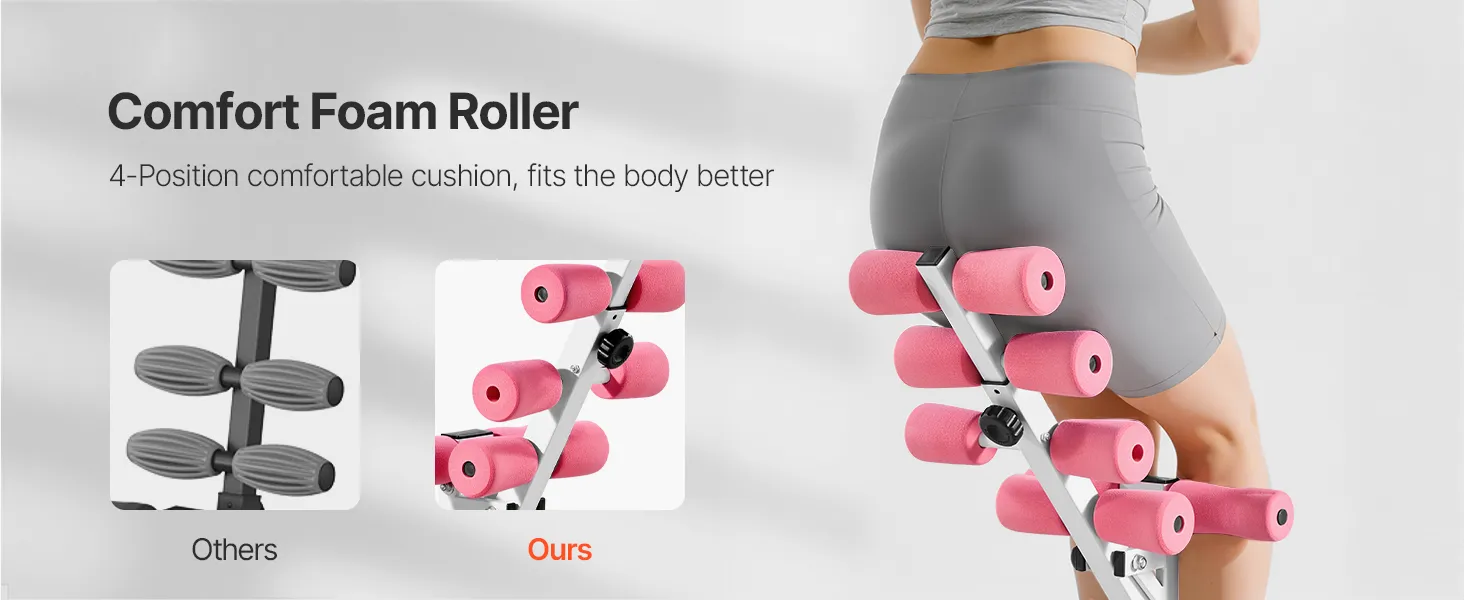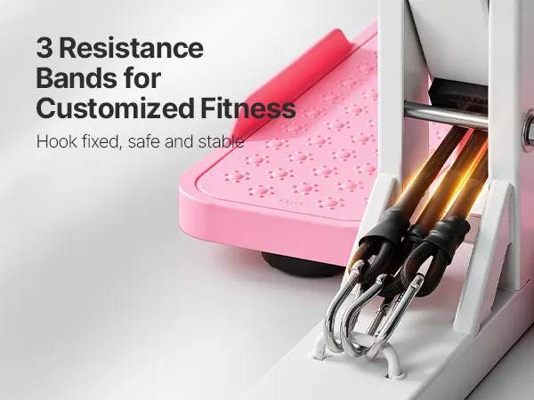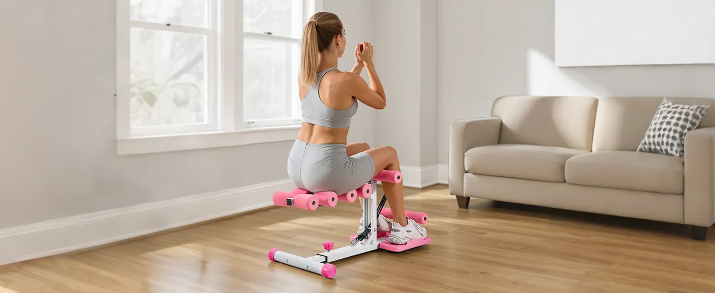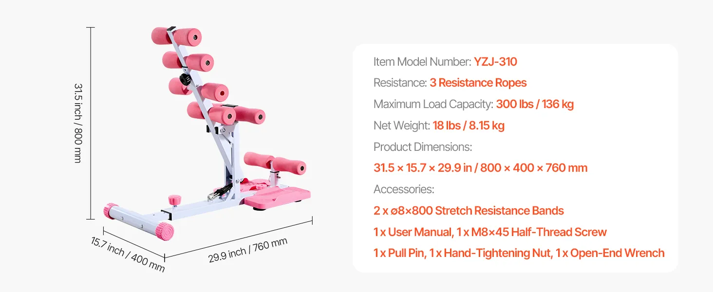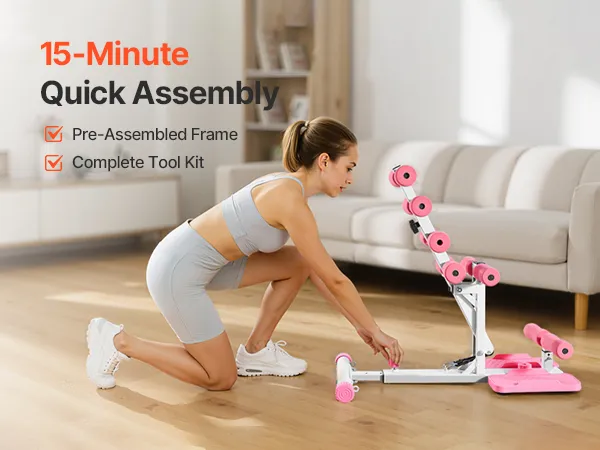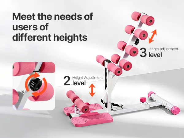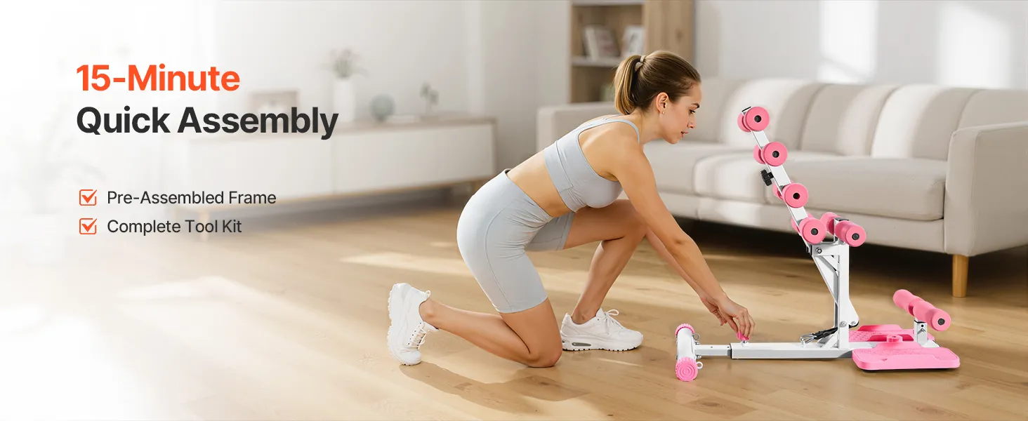 VEVOR Deep Squat Machine, Adjustable Glutes Trainer Machine with 3 High-Strength Resistance Bands, Folding Core Leg & Glutes Exercise Trainer, Push Up Workout Equipment at Home Gym, Pink + White