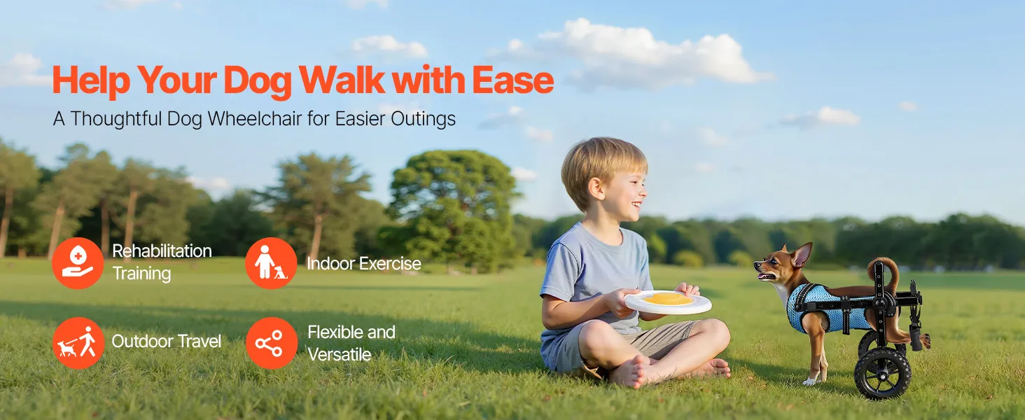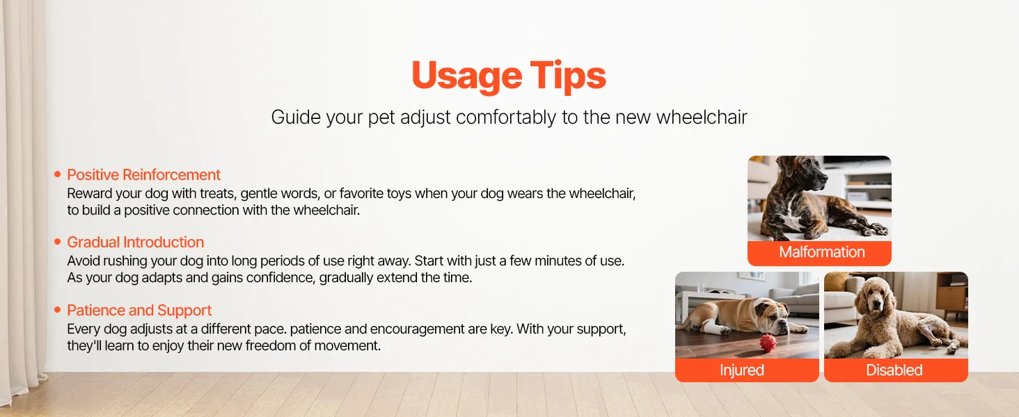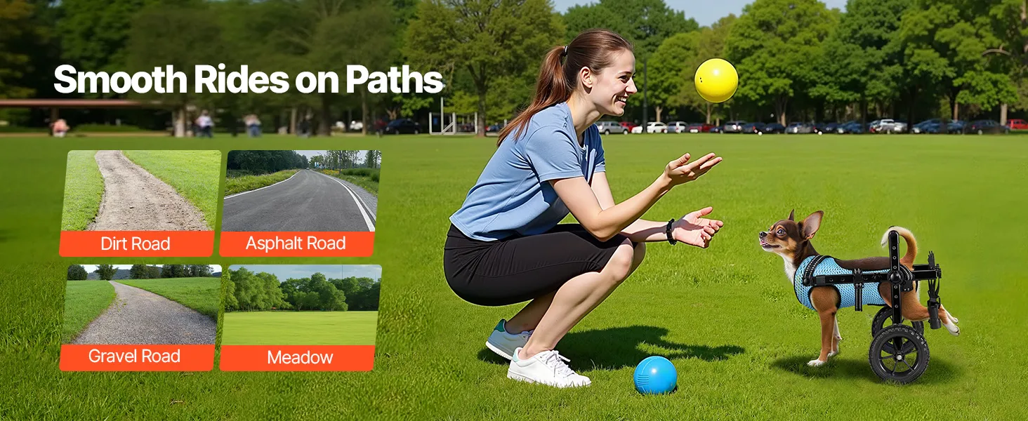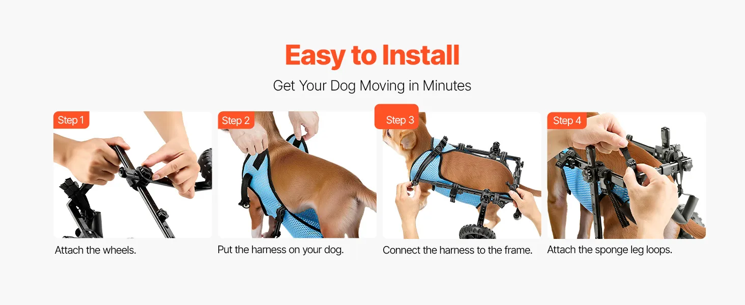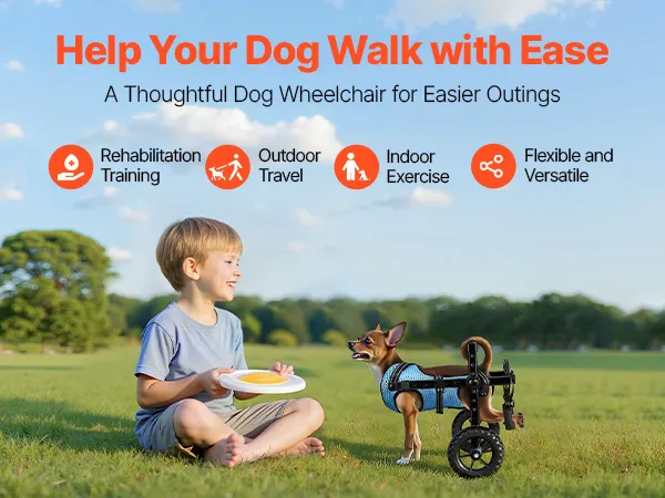 • Help Dog Regain Mobility Freedom: Designed for dogs with hind leg injuries, disabilities, or during recovery, this dog wheelchair for back legs helps them walk again and have fun. Ideal for rehab training, indoor exercise, and outdoor adventures, keeping every step full of energy.