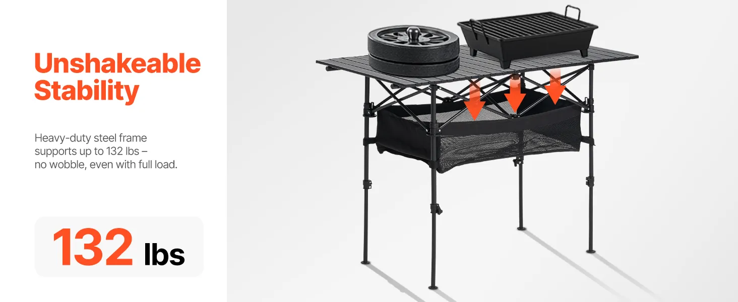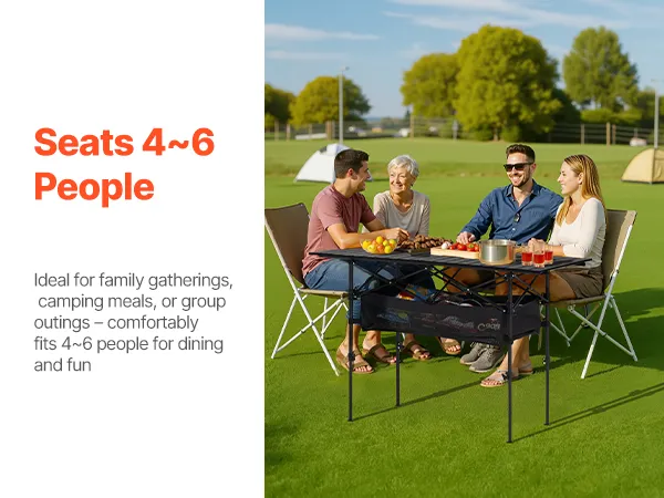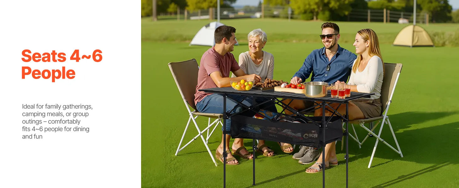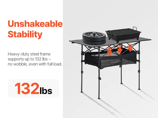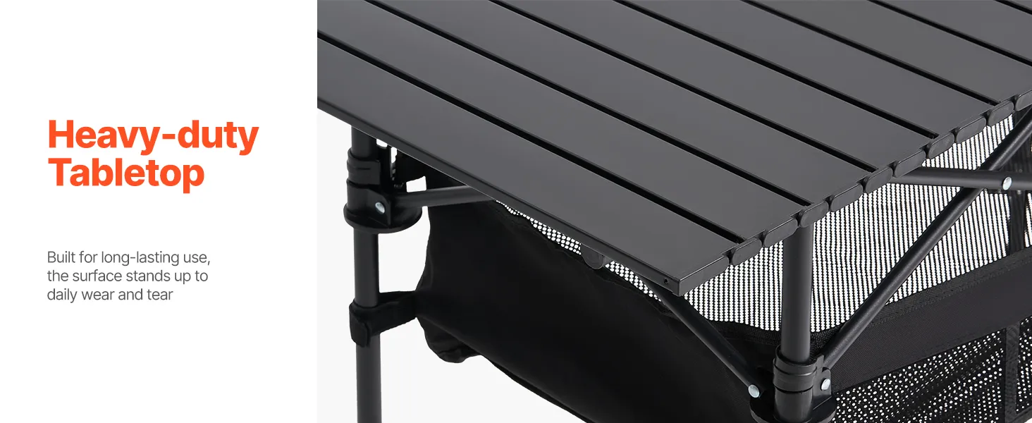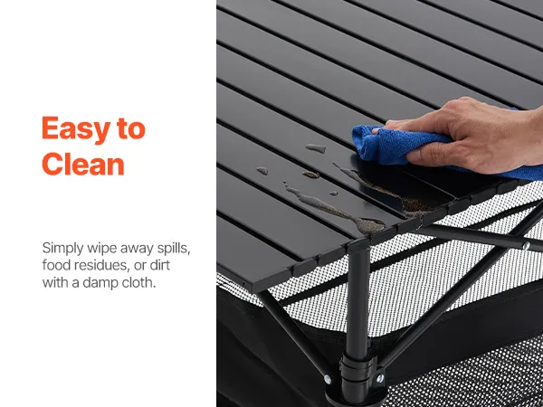 Q: What are the dimensions of the tabletop?A: The tabletop measures 47.2x21.7 inch (1200x550 mm), providing ample space for meals, gear, or activities.Q: How much weight can the table support? Is it stable?A: The table supports up to 132 lbs (60 kg) and features a robust frame with legs that resist wobbling.Q: How much does the table weigh? Is it easy to move?The table is lightweight at 4.8 kg / 10.6 lbs, folds compactly, and is easy to move with the included storage bag.Q: Is assembly required? How complicated is it?A: No tools are needed – simply follow the included installation manual for assembly. Setup is quick and intuitive for anyone.