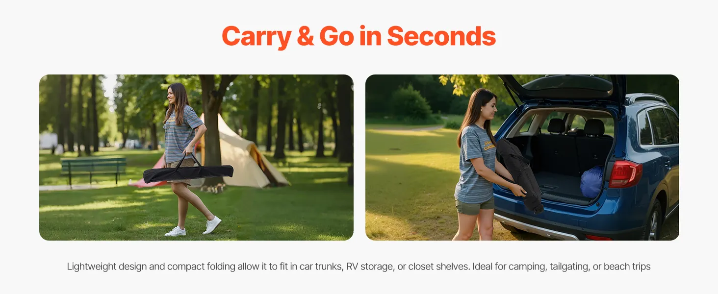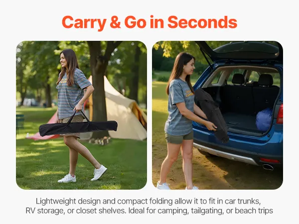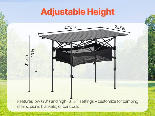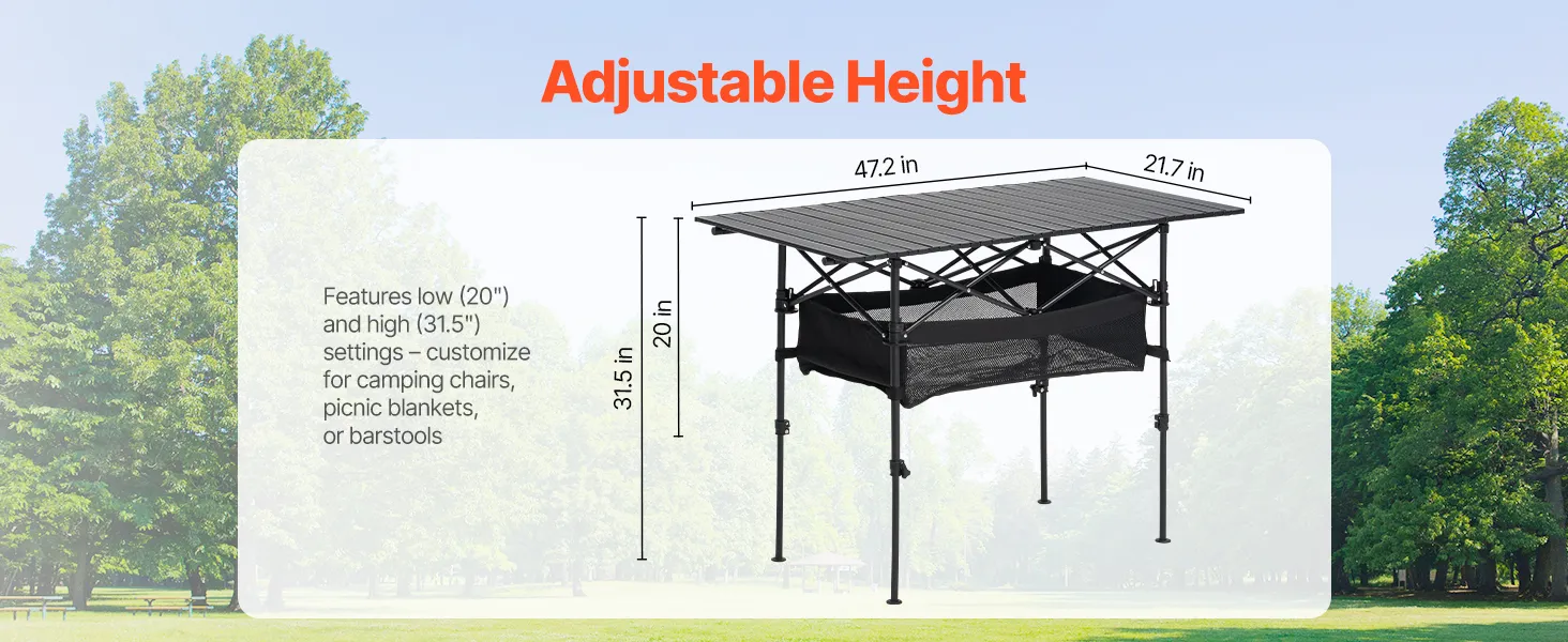 VEVOR Folding Camping Table, Portable Roll Up Side Tables, Lightweight Aluminum Beach Table with Adjustable Height, Large Storage Bag and Carry Bag, For Outdoor BBQ Tailgating Picnic, Travel, Black