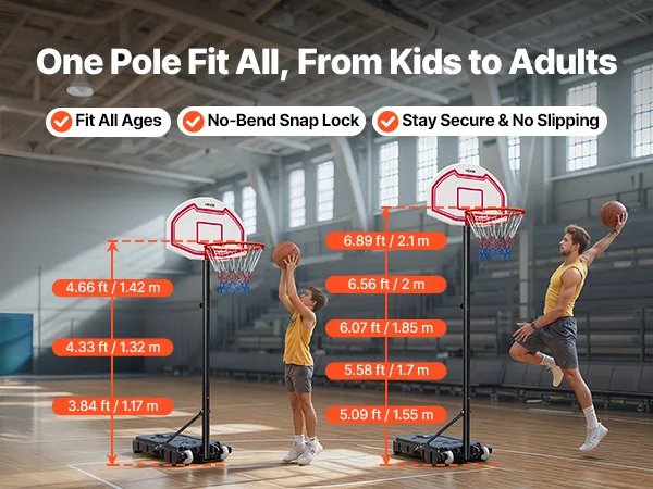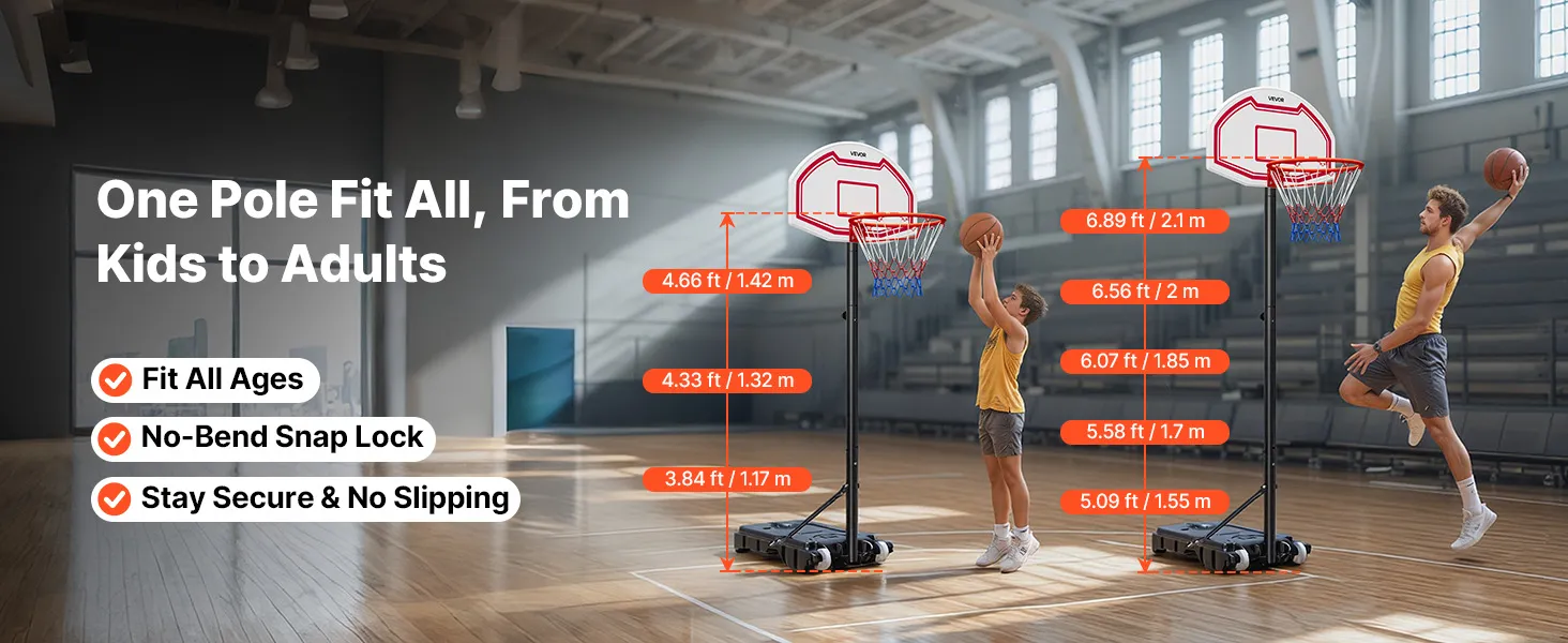 VEVOR Portable Basketball Stand, 1.6 to 2.1m Height Adjustment Basketball Hoop & Goal, Kids Adjustable Basketballs Hoop with Nylon Net & Rolling Wheels, Portable Backboard Set for Patios, Poolside