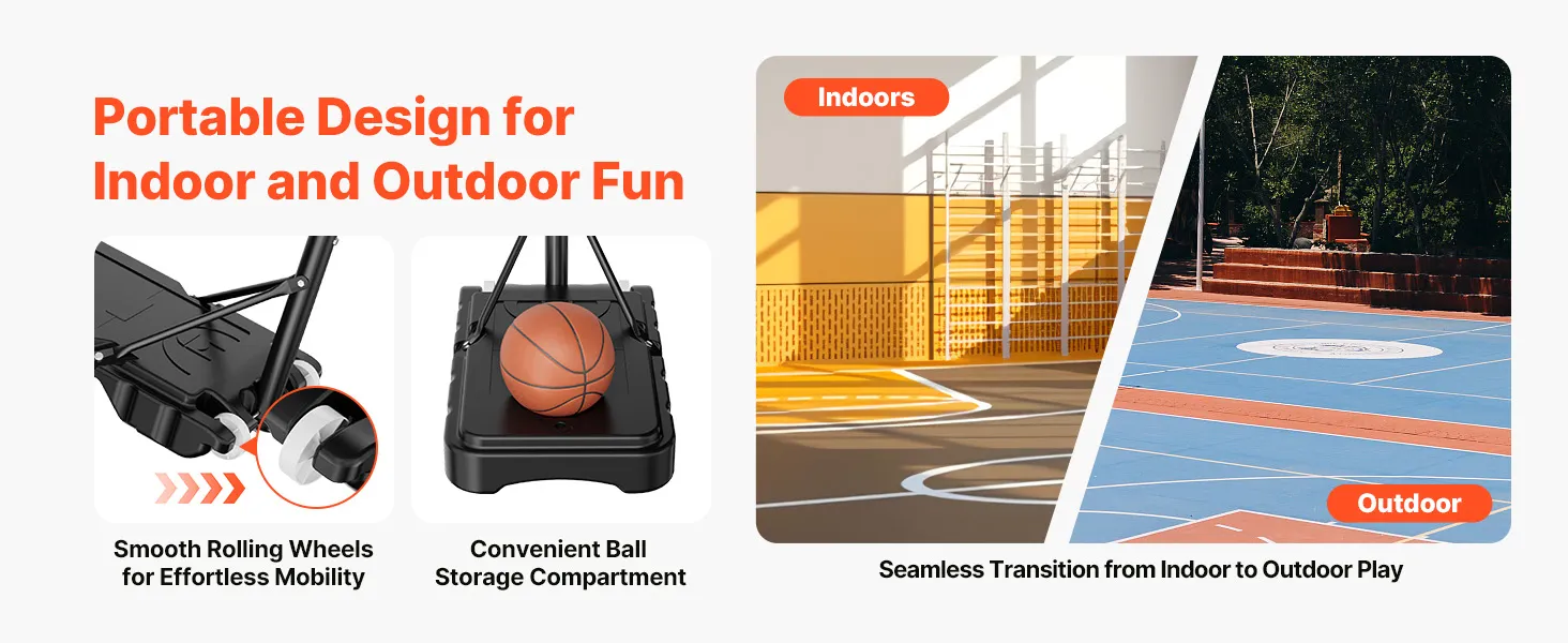 Don't let the weather limit your play with this portable basketball hoop. Made from rust- and corrosion-resistant materials, it withstands harsh outdoor conditions. Enjoy uninterrupted basketball games while the durable frame and weather-ready design keep every session consistent and fun.