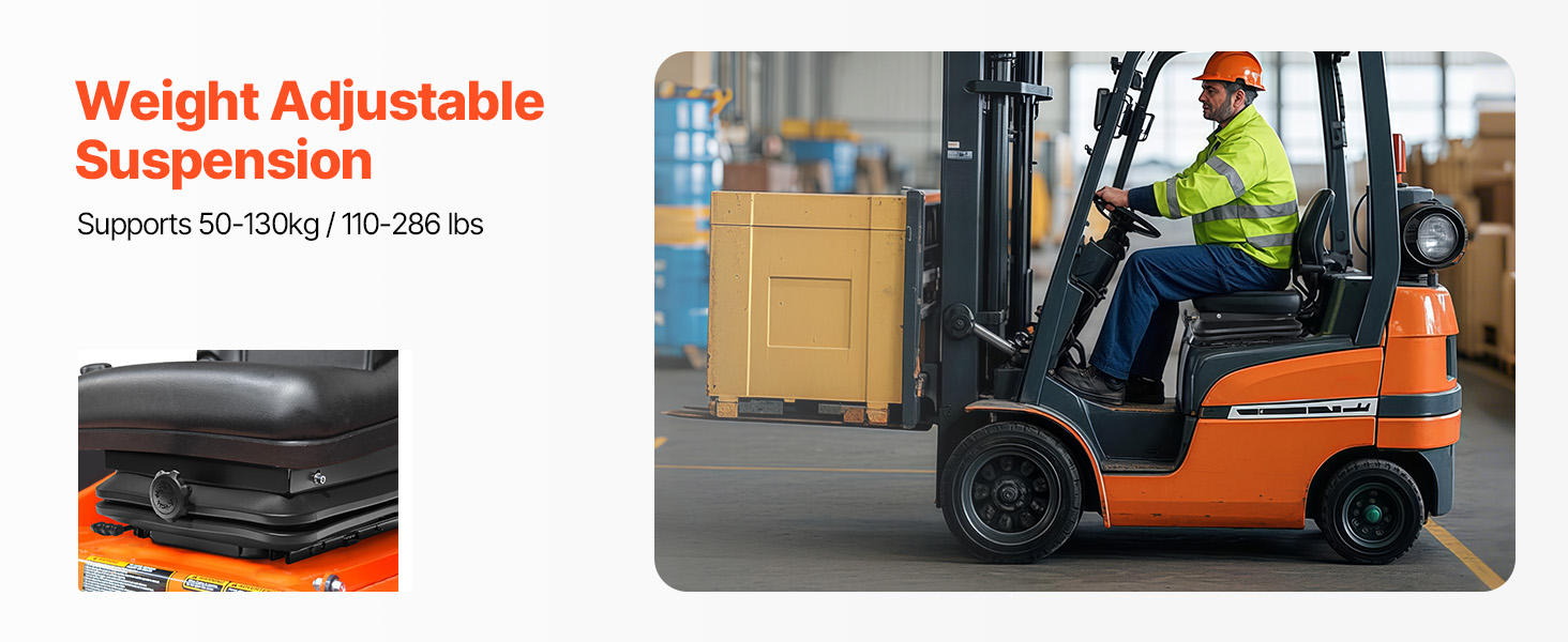 Этот комплект подвески для вилочного погрузчика выдерживает нагрузку 110,2-286,6 фунтов, имеет ход амортизации 1,77 дюйма, что эффективно снижает усталость спины и талии. 8 монтажных отверстий делают его идеальным для вилочных погрузчиков, газонокосилок и т.д. Удлинитель переключателя диаметром 19,7 дюйма обеспечивает гибкую и быструю установку.