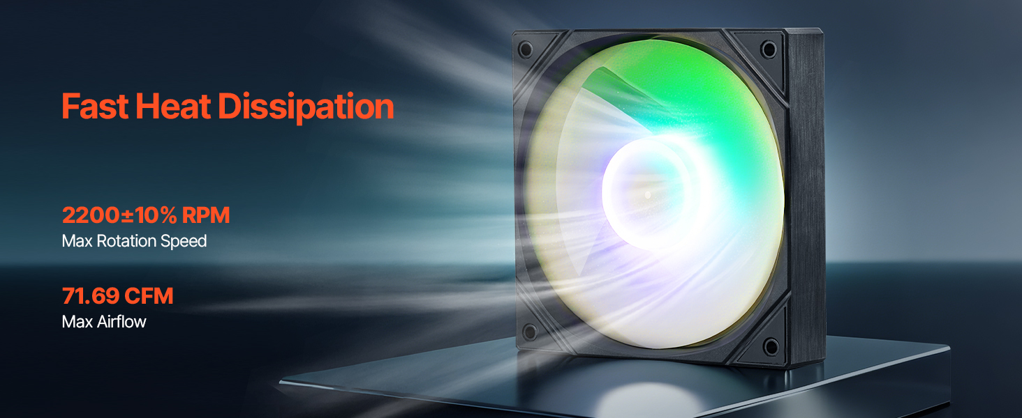 Создает воздушный поток за счет вращения для ускорения отвода тепла от радиатора.