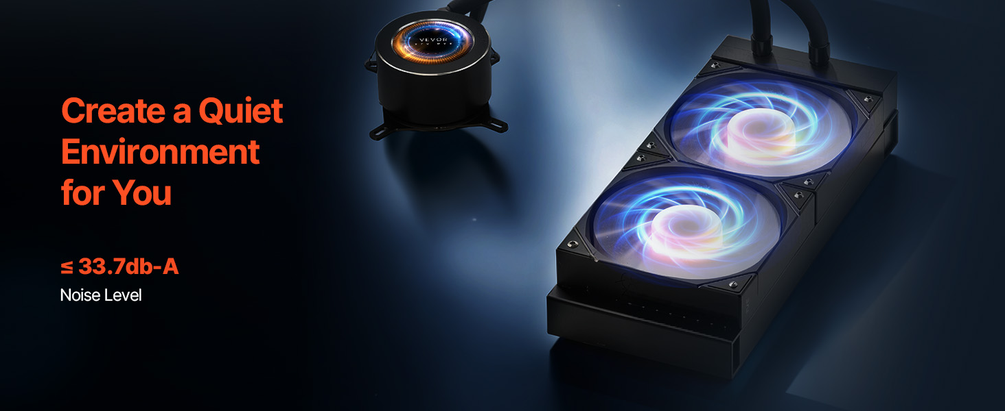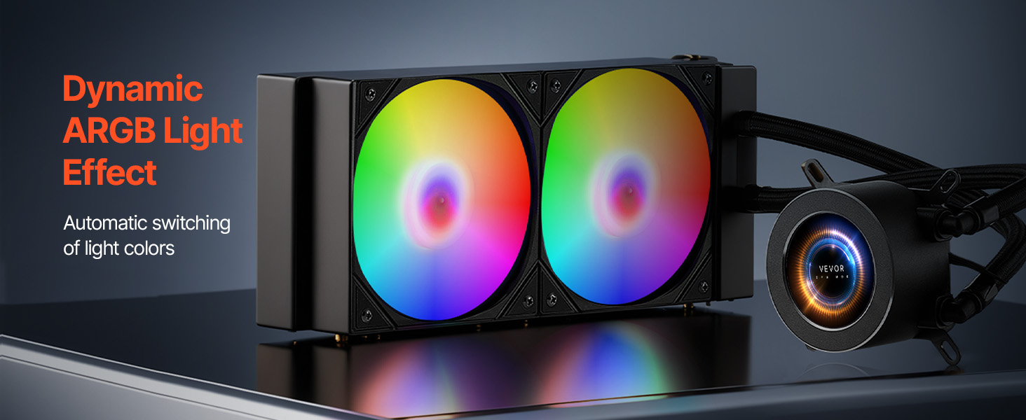 VEVOR CPU Liquid Cooler, AIO CPU Water Cooler - 120mm PWN Fans & Pump, Customizable Black PC Liquid Cooler with 2.1" LCD Display & ARGB light, for Intel 115X/1366/2011/1700/1200, AMD AM4/AM5