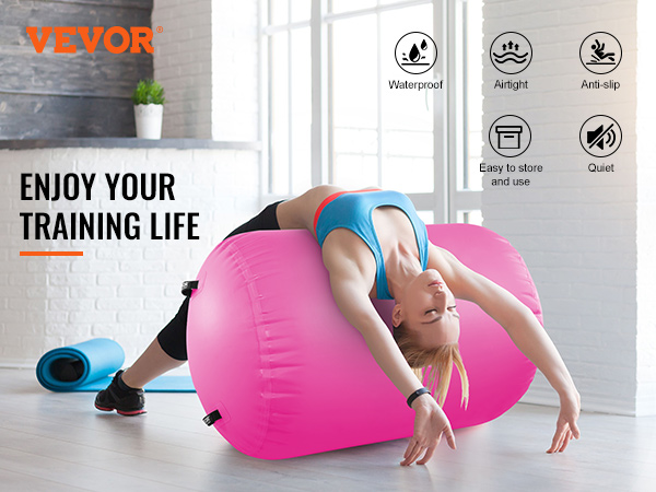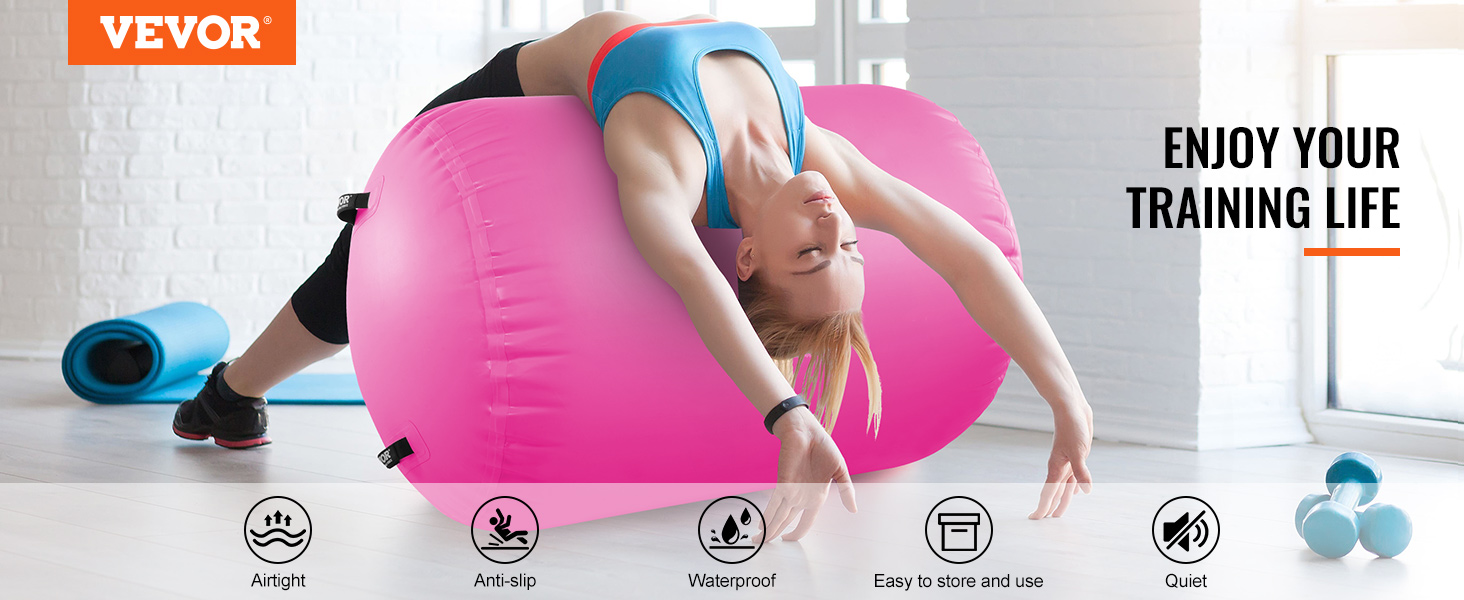 VEVOR Air Mat Tumble Track Air Spot, Round Inflatable Air Roller, Air Barrel Gymnastic Equipment with Electric Pump, Tumbling Backbend Trainer for Home Use/Gym/Yoga/Cheerleading/Beach/Park/Water, Pink