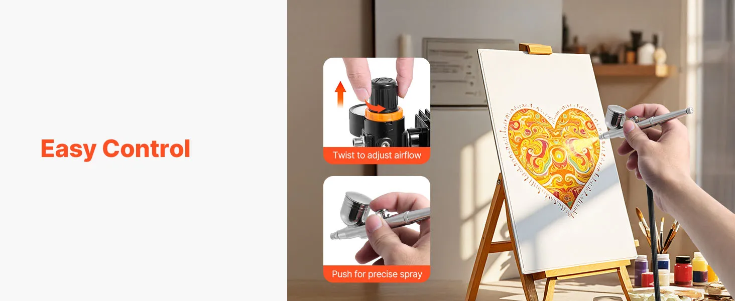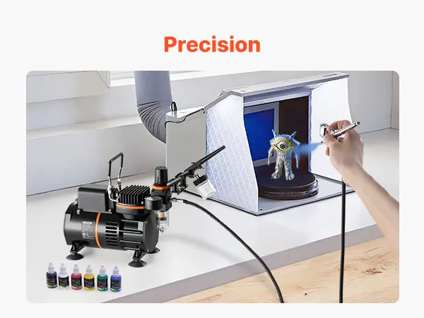The dedicated holder of the air brush kit keeps your airbrush secure and organized, avoiding messy setups and ensuring a tidy workspace.
