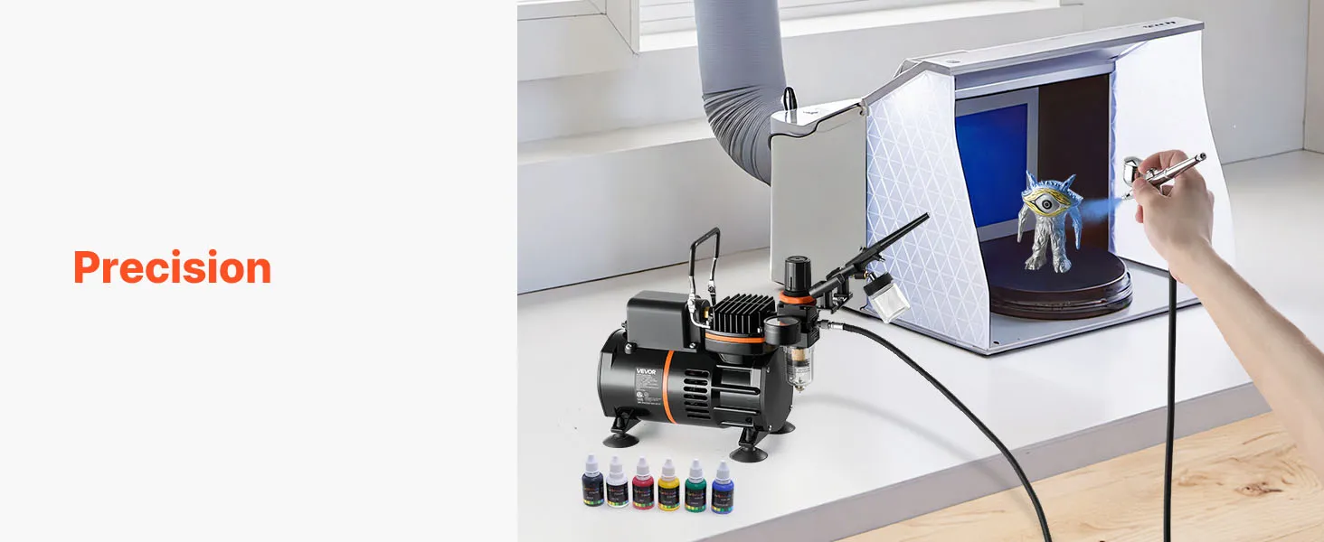 VEVOR Airbrush Kit, 1/6 HP, Air Brush Kit with Air Compressor, 3 Dual-Action Professional Airbrushes with 3 Tips, Hose, Acrylic Paint, 2 Fans, Low Noise, for Cake Decorating, Model Painting, Nail Art
