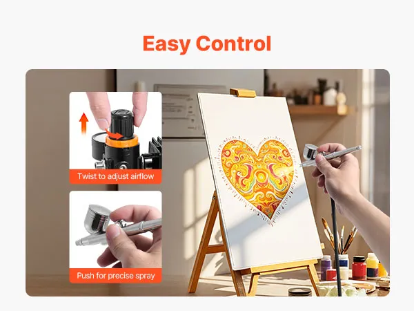 Our airbrush kit includes a compressor, 3 airbrushes, 6 acrylic paints, a thinner, a cleaner, a cleaning brush, a hose, a holder and a color wheel card. No extra purchases needed—ideal for beginners and pros alike.