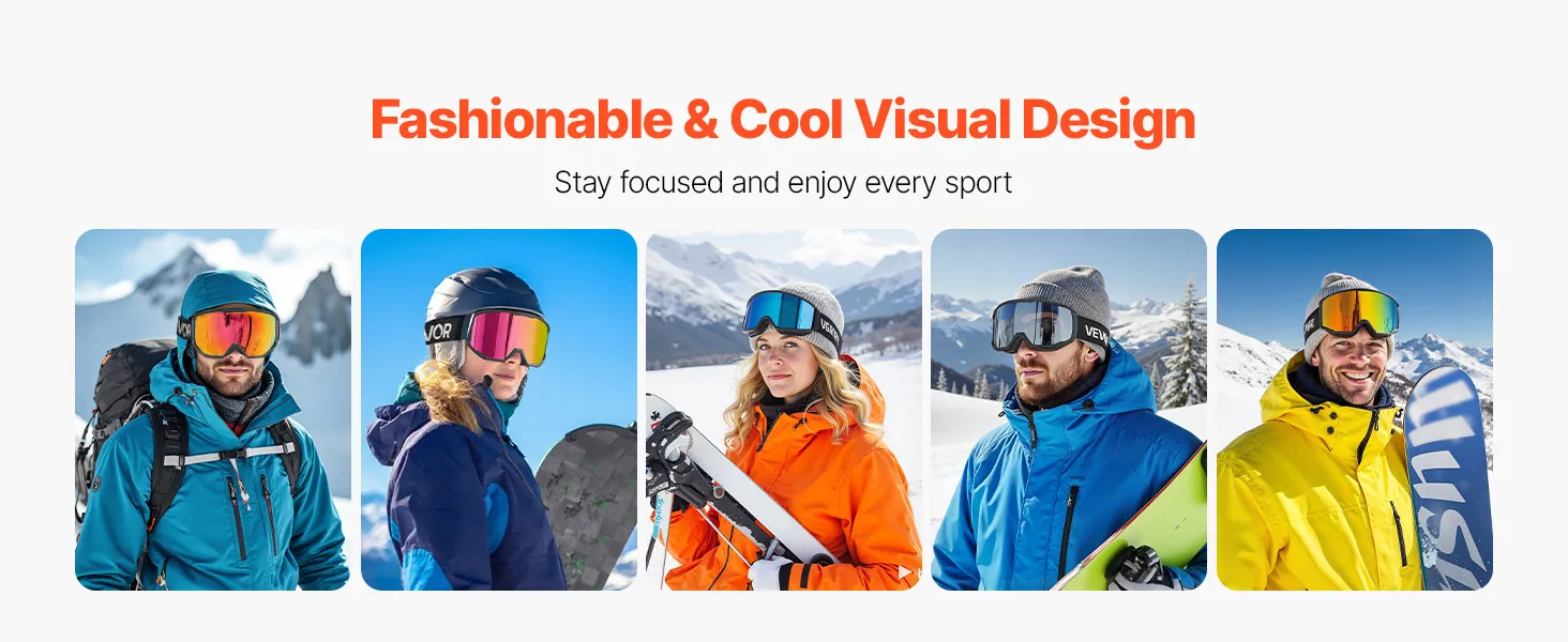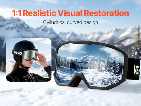 The advanced cylindrical lens of the snow goggles offers true 1:1 distortion-free vision, restoring a natural view of the slopes. The gentle curve reduces visual warping, making it ideal for pro skiers who demand precise terrain judgment.