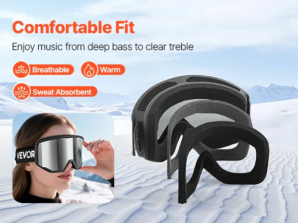 Soft triple-layer foam of the snowboard goggles gently contours to your face, absorbing shock and blocking cold air. The breathable, moisture-wicking design keeps you warm, sweat-free, and comfortable for all-day skiing.