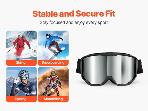 The snug fit hugs your face shape, so the skiing goggles stay in place even during intense activity. Clear, fog-free vision keeps you focused whether you’re skiing, snowboarding, or cycling.