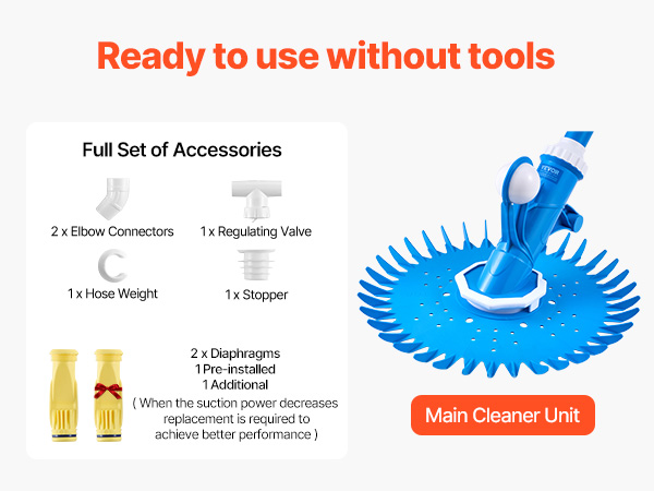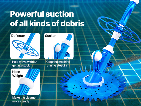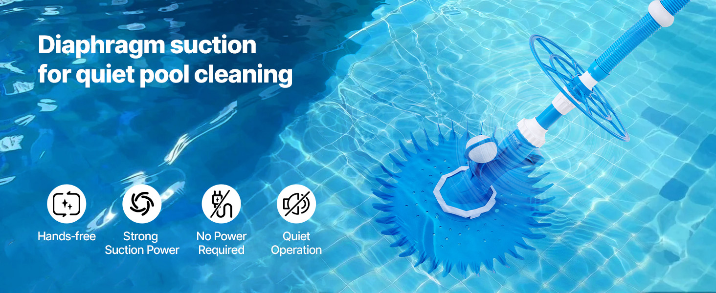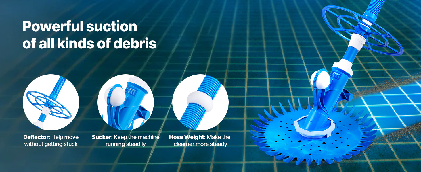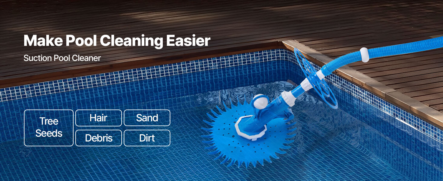 VEVOR Suction Pool Cleaner, Automatic Pool Vacuum Cleaner, Suction Side Automatic Pool Cleaner, Suction Vacuum Pool Sweeper with 12 Hoses, for In-ground and Above-ground Pool Up to 609.6 x 1066.8 cm