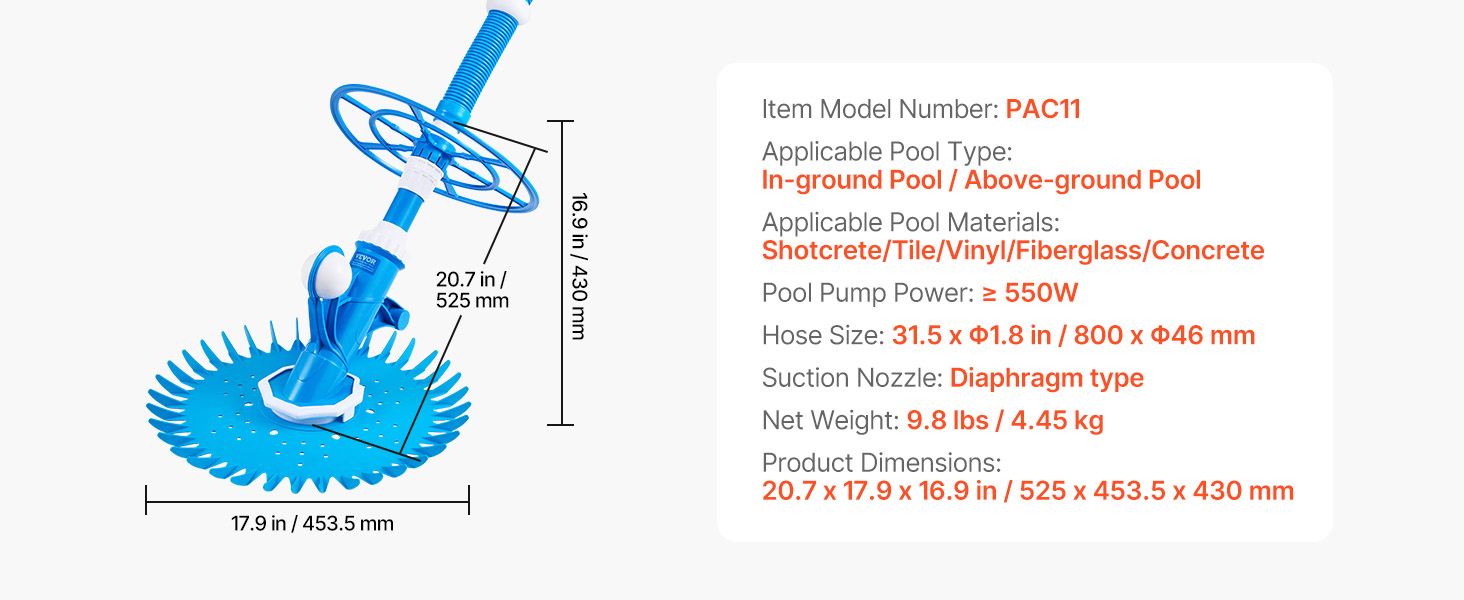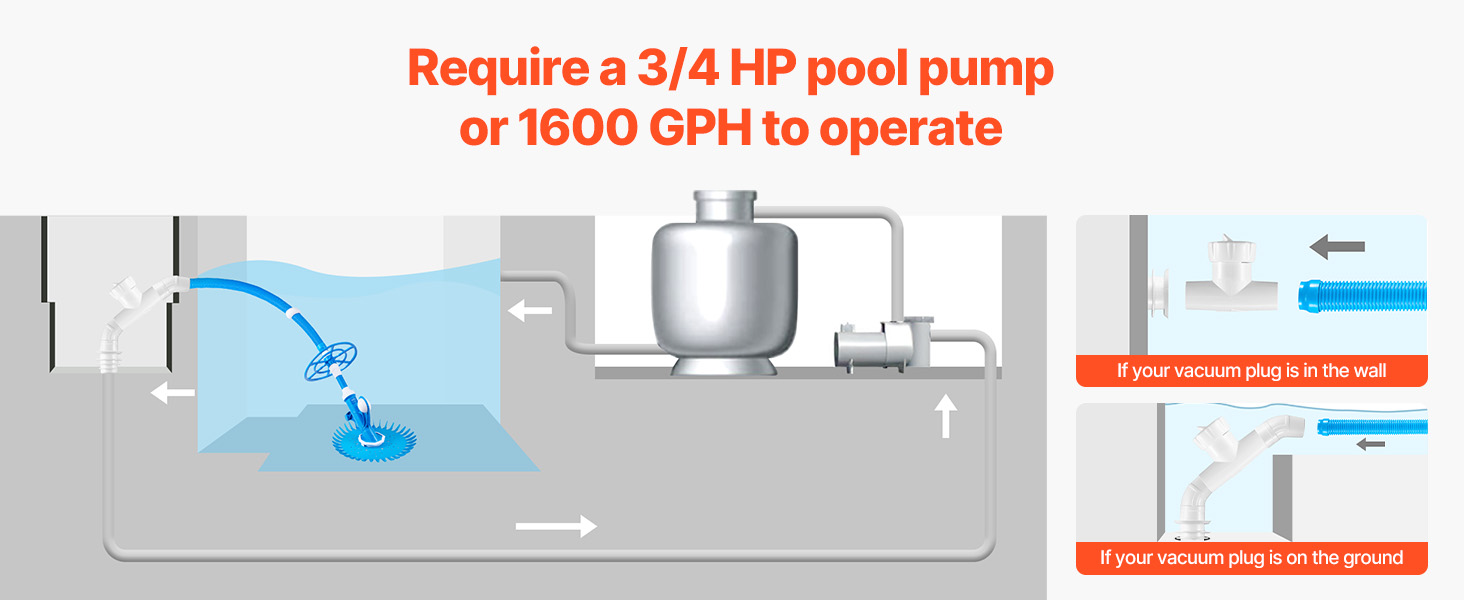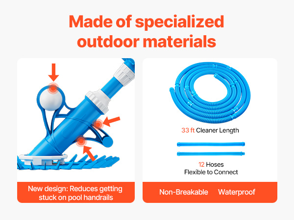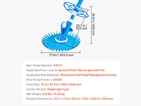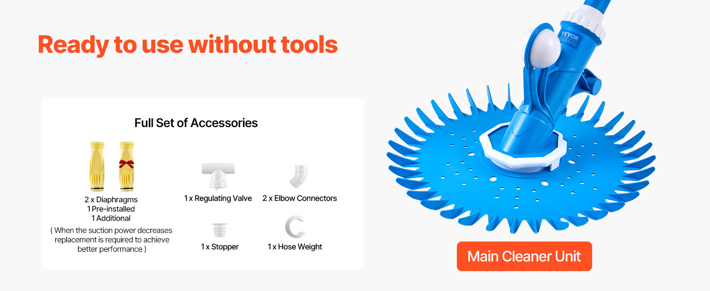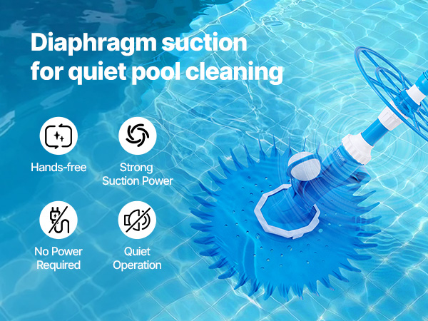 VEVOR Suction Pool Cleaner, Automatic Pool Vacuum Cleaner, Suction Side Automatic Pool Cleaner, Suction Vacuum Pool Sweeper with 12 Hoses, for In-ground and Above-ground Pool Up to 609.6 x 1066.8 cm