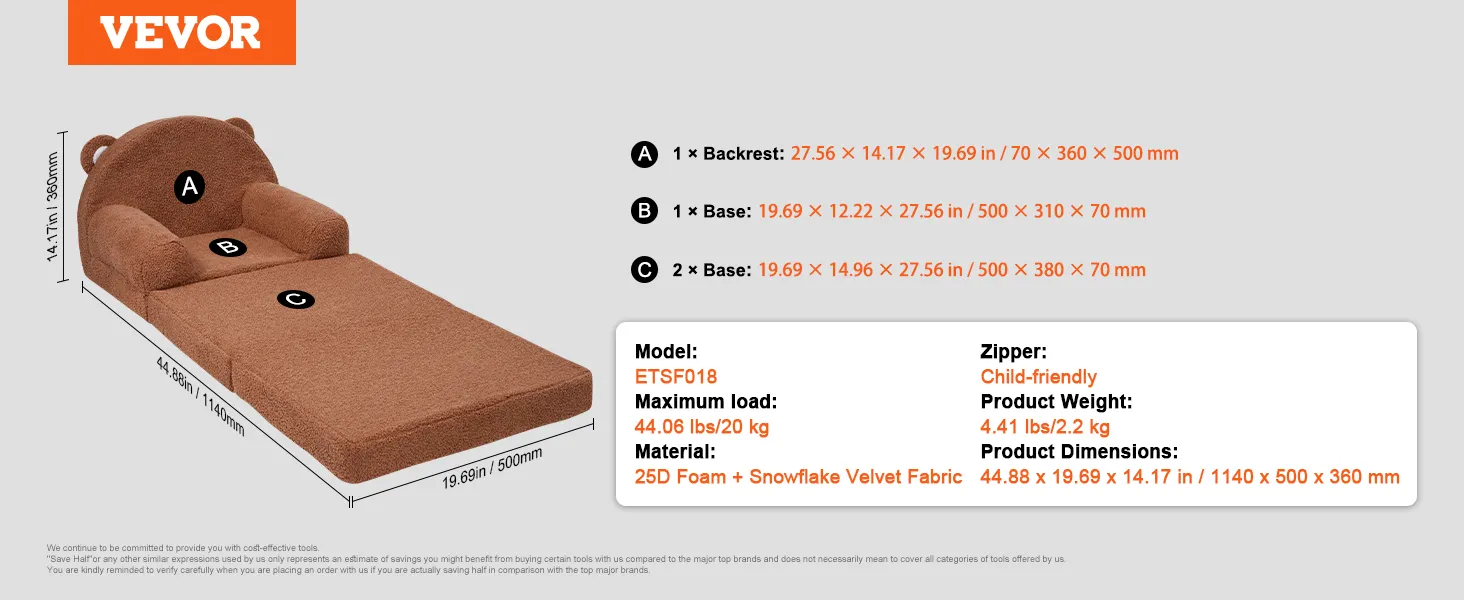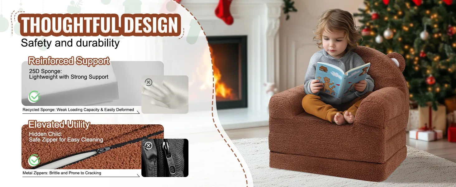 • Высококачественные материалы: Этот детский диван изготовлен специально для детей и соответствует сертификату CPC по безопасности. Для изготовления чехла мы используем мягкую, приятную для кожи ткань, а наполнитель состоит из губки высокой плотности 25D для быстрого отскока.