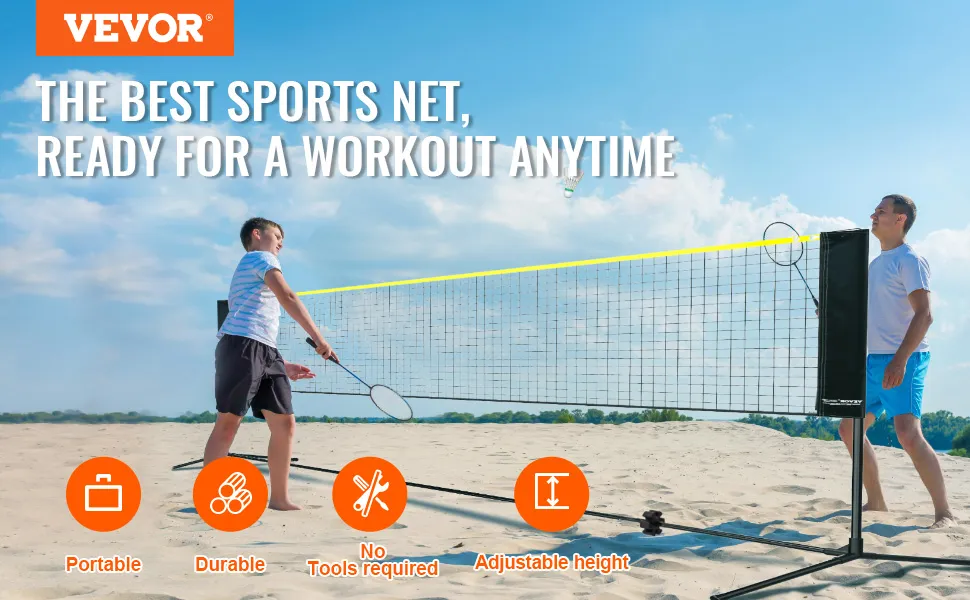 Our multi-sport portable net is more than just a badminton net; it's also suitable for pickleball, tennis, soccer tennis, and casual volleyball.
