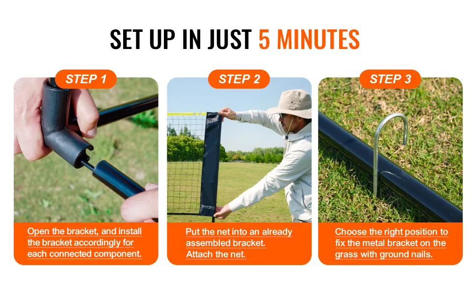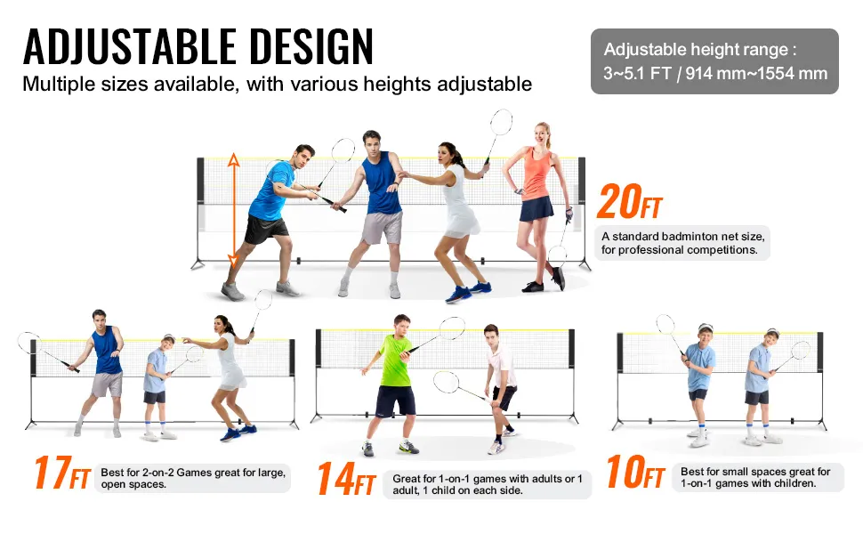 Наслаждайтесь неограниченными развлечениями на заднем дворе с нашим универсальным набором тренировочных сеток. Благодаря регулируемой высоте от 3 до 5,1 футов вы можете легко переключать сетку с высокой на низкую, а для пиклбола, тенниса и футбольного тенниса устанавливать еще более низкие настройки.