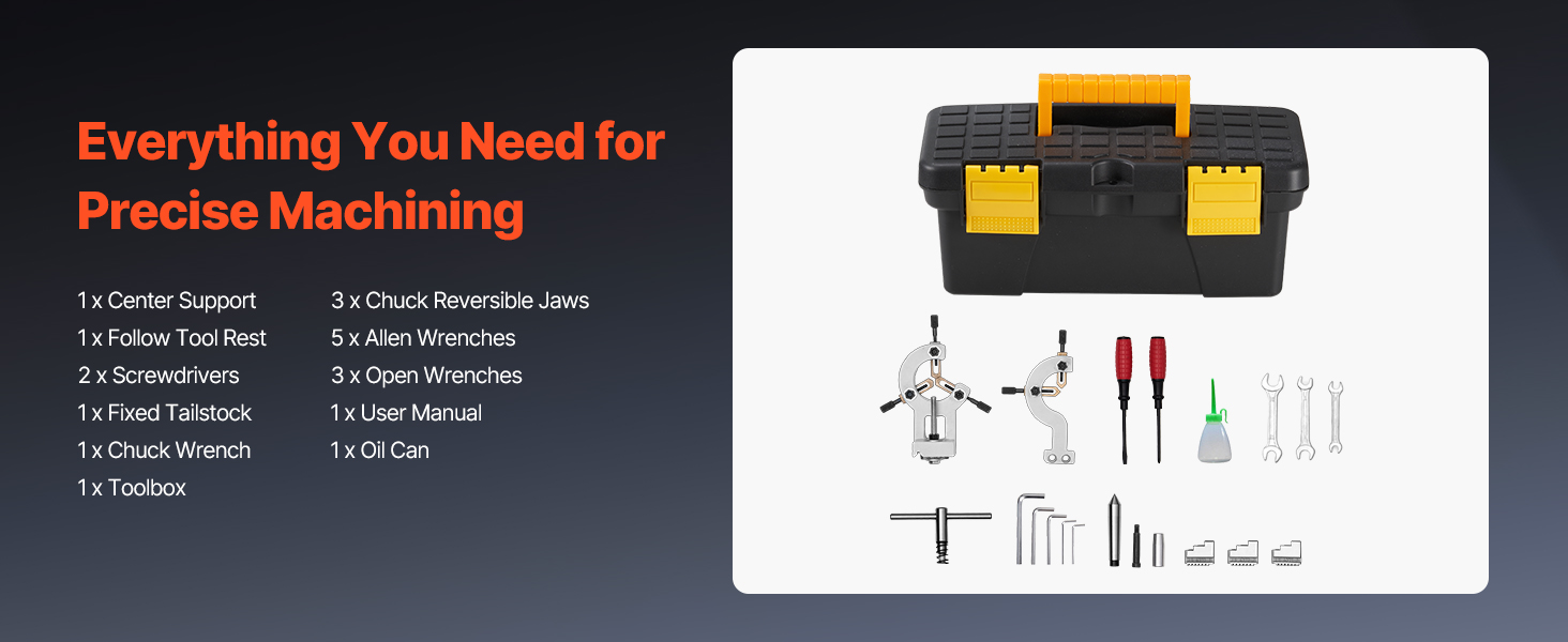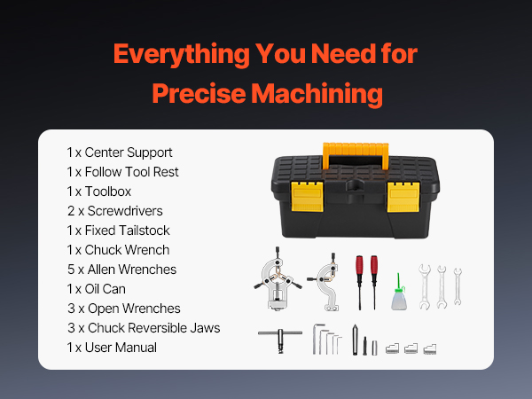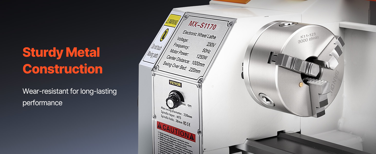 Этот токарный станок по металлу размером 8,7 x 39 дюймов оснащен мощным двигателем мощностью 1250 Вт, обеспечивающим высокую частоту вращения 2500 об / мин и точность вращения шпинделя 0,001 дюйма / 0,03 мм для получения точных результатов обработки.