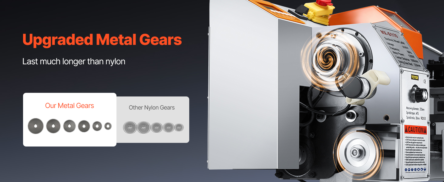 This power metal lathe has an electronic threading system, allowing easy switching between metric and imperial units. It supports fully automatic feeding and has a belt-free drive system. It is ideal for processing soft metals, acrylics, and plastics, as well as mold making, part repair, etc.