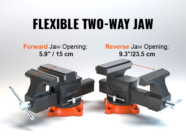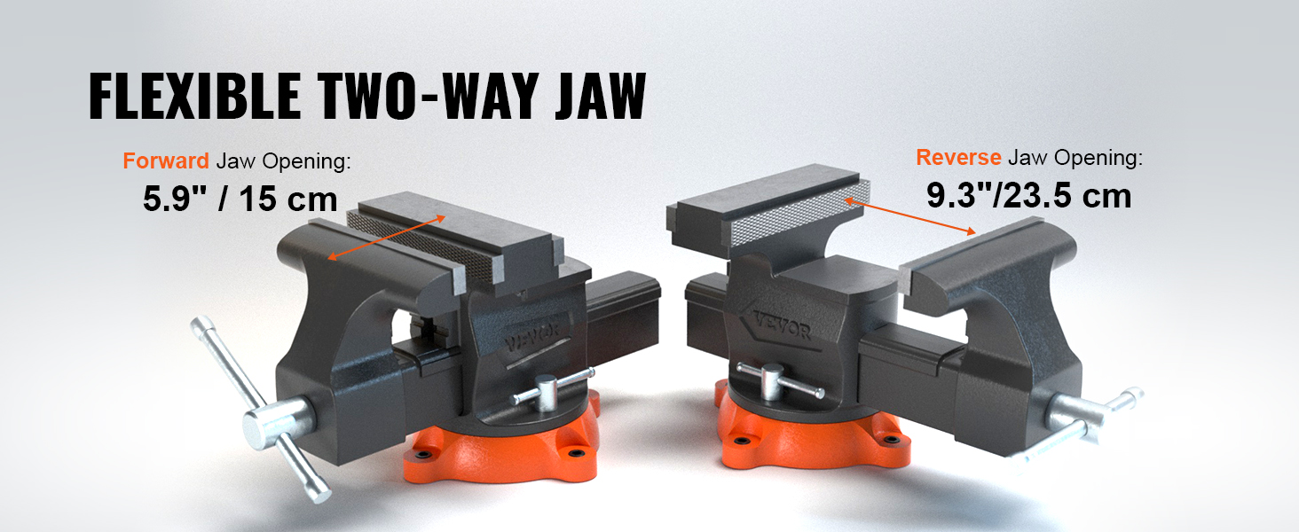 VEVOR Bench Vise, 16.5 cm Jaw Width 16.5 cm Forward & 23.6 cm Reverse Opening, 360-Degree Swivel Locking Base Multipurpose Workbench with Anvil, Heavy Duty Ductile Iron with Bolts & Nuts, for Drilling, Pipe Cut