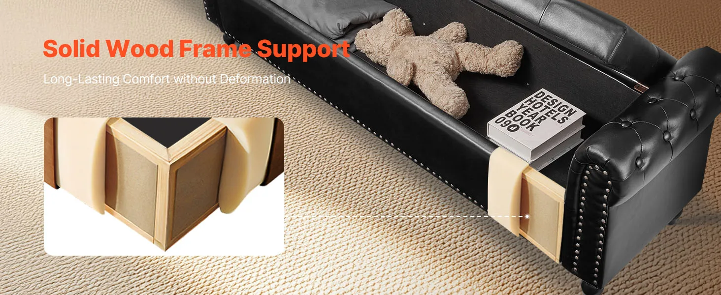 - Leather + Sponge + Rubber Wood + Engineered Wood