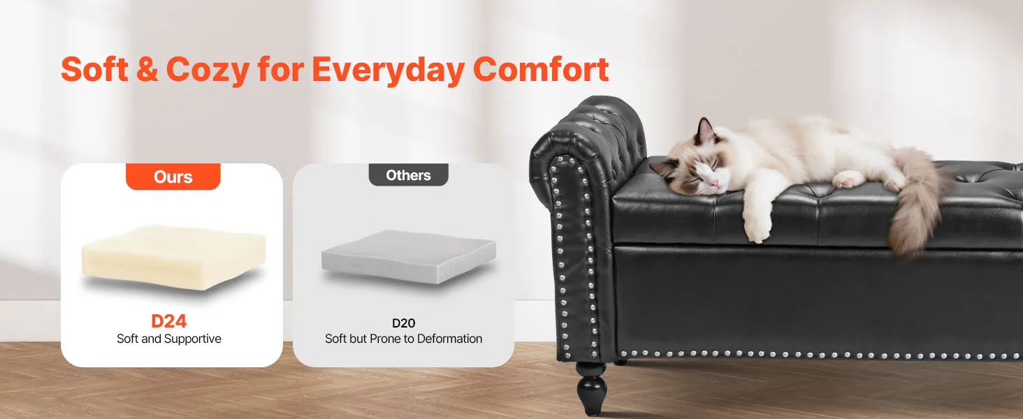A1: These versions use D24 high-resilience foam, delivering a soft yet supportive sitting experience. Built with solid rubberwood legs, they combine style and practicality—ideal for bedrooms, entryways, or smaller spaces.