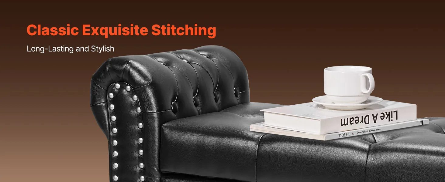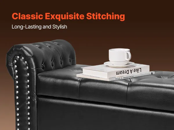VEVOR Button-Tufted Storage Ottoman Bench, Rolled Arm PU Leather Bench with Solid Wood Legs, Modern Shoe Benches Seat for Entryway, Upholstered End of Bed Benches for Living Room, Dining Room, Black
