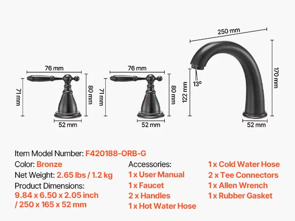 VEVOR Roman Tub Faucet, Gooseneck Bath Tubs Faucets Set with 2 Handles, Roman Tub Faucets Deck Mount for Baby Care, Adult Bathing, 3 Hole Waterfall Bathtub Faucet, Bronze, High Arc Spout Design