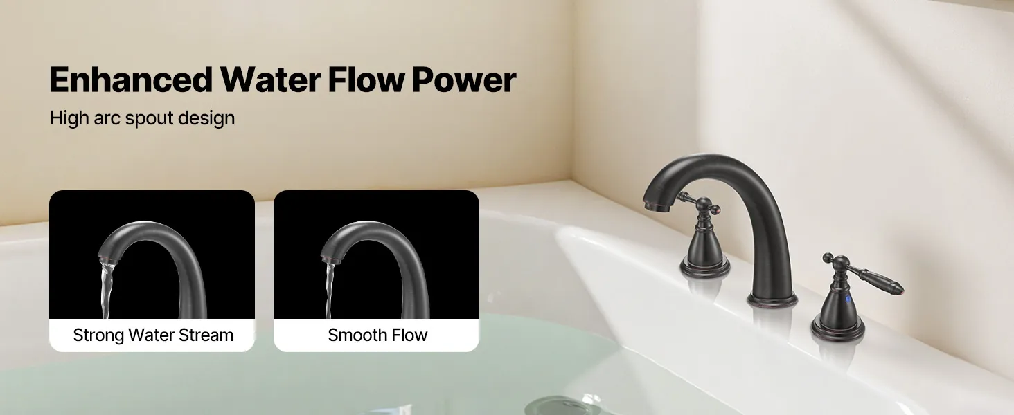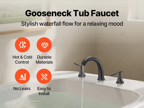With its high-arched gooseneck spout, this waterfall roman tub faucet enhances both look and performance. The design channels water into a strong, focused flow, ensuring a refreshing and efficient tub-filling experience.