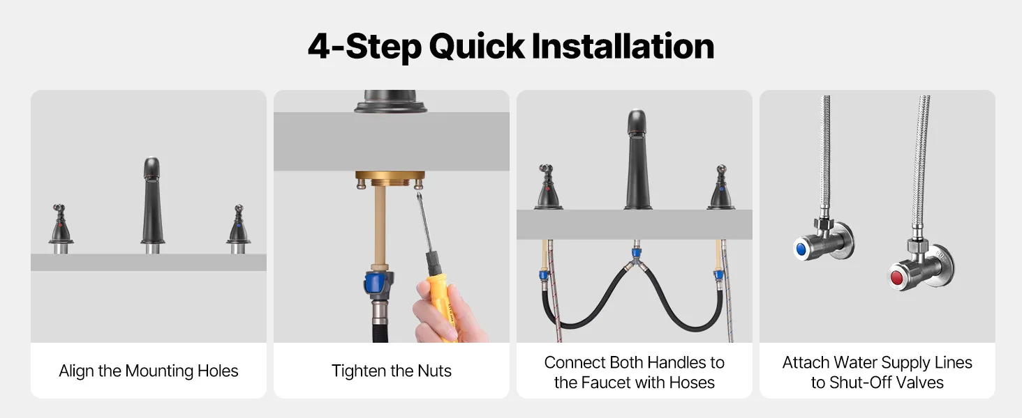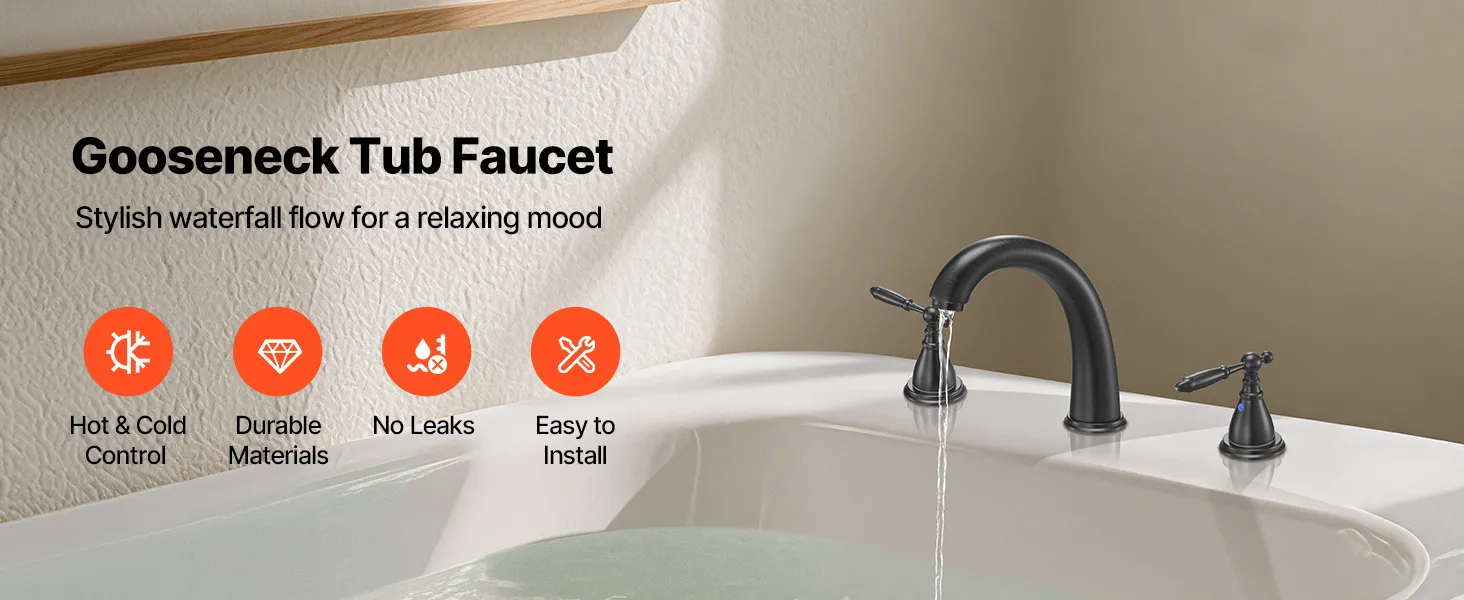 Delivering 2.2 gallons per minute, this roman tub faucet fills a 40-gallon bathtub in just 18 minutes. The 3-hole deck-mounted setup fits most tubs. Crafted from stainless steel, it offers strong structure, dual-handle control, and a reliable valve core for consistent, easy operation.