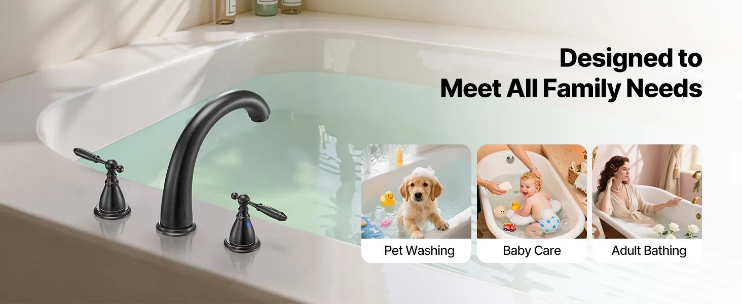Designed with families in mind, this roman bathtub faucet set supports a full range of daily uses. From quick pet washes to relaxed baths and gentle baby rinses, it delivers comfort, convenience, and functionality that make bath time easier for everyone.