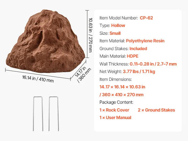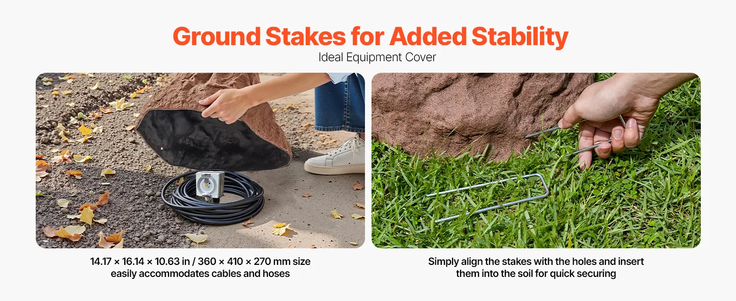 Included ground stakes ensure the facilities can be firmly covered, avoiding shifting even in windy weather. This landscape rock cover fits tightly against the ground to shield manholes, pipelines, and other facilities comprehensively.