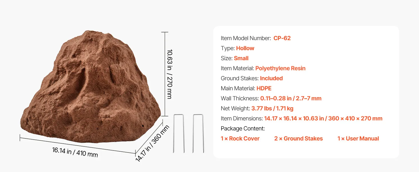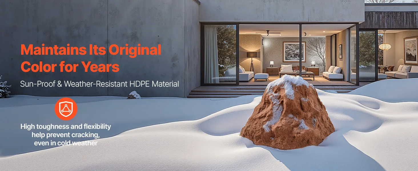 Crafted from high-density HDPE, this rock cover is sun-resistant, fade-proof, and crack-resistant even in harsh winter conditions. Our faux rock cover maintains a neat appearance for long-term outdoor use—reliable and durable.