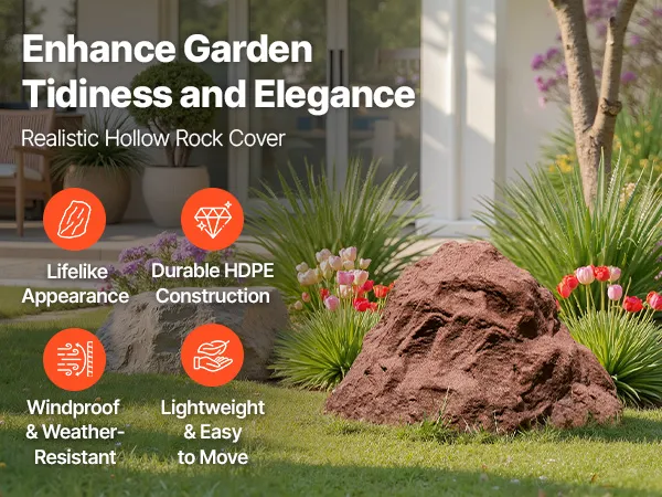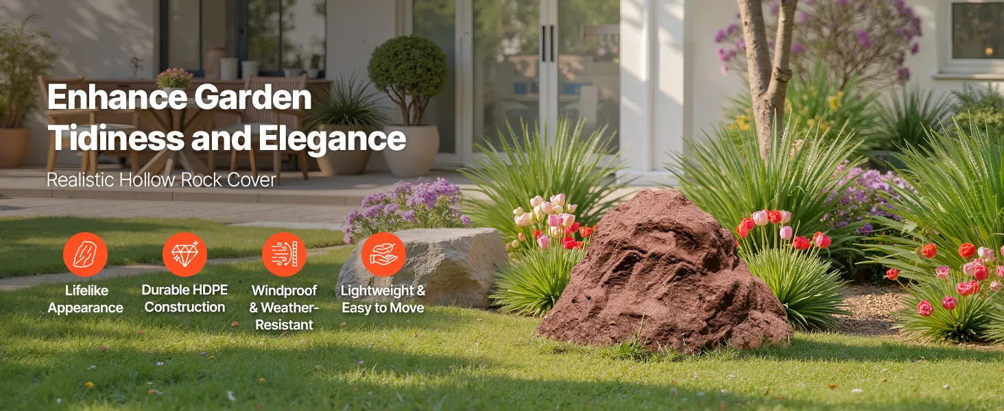 The faux rock exterior blends seamlessly into the natural conditions, easily concealing clutter like manhole covers and pipes. Our fake rock cover enhances garden neatness and visual appeal to create a great outdoor space.