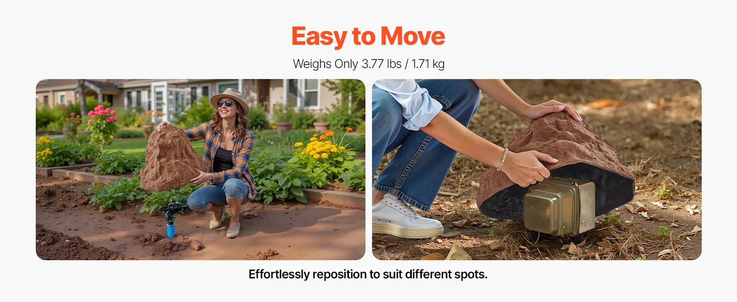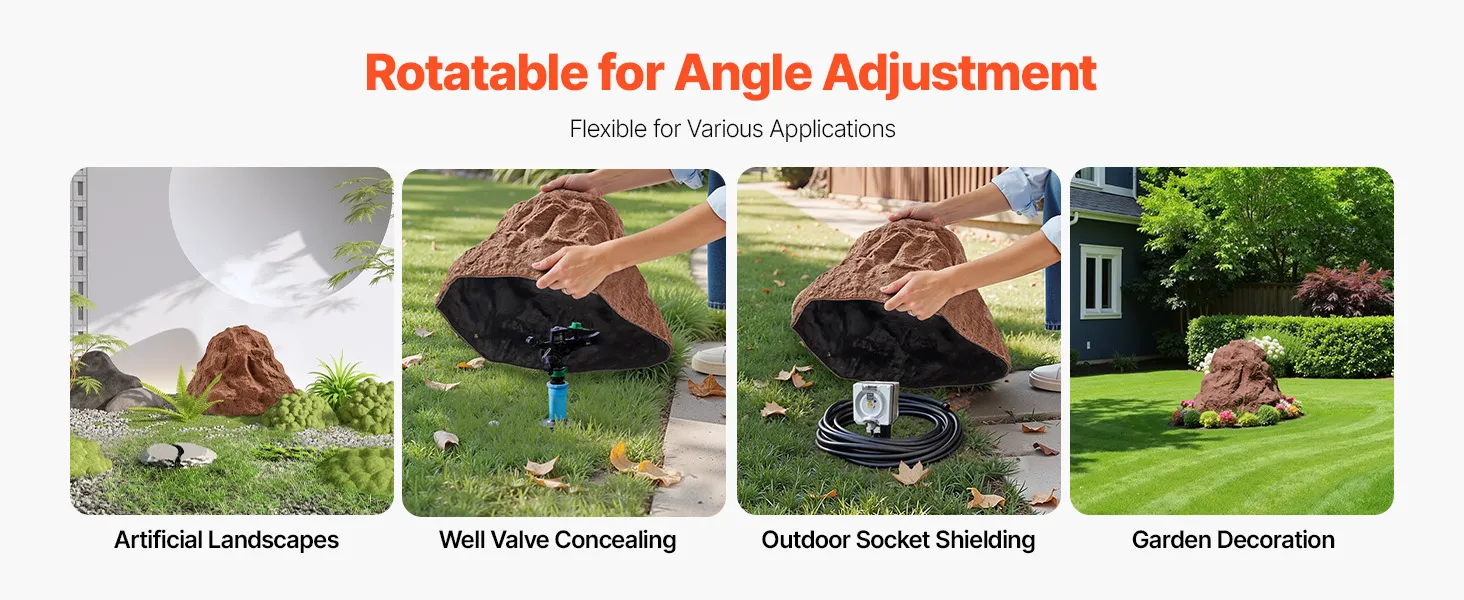 The angle can be flexibly rotated and adjusted according to your needs. This landscape rock cover is ideal for manhole lid concealing, small pumps, electrical boxes shielding, and garden decoration. Multi-purpose design make it practical and stylish.