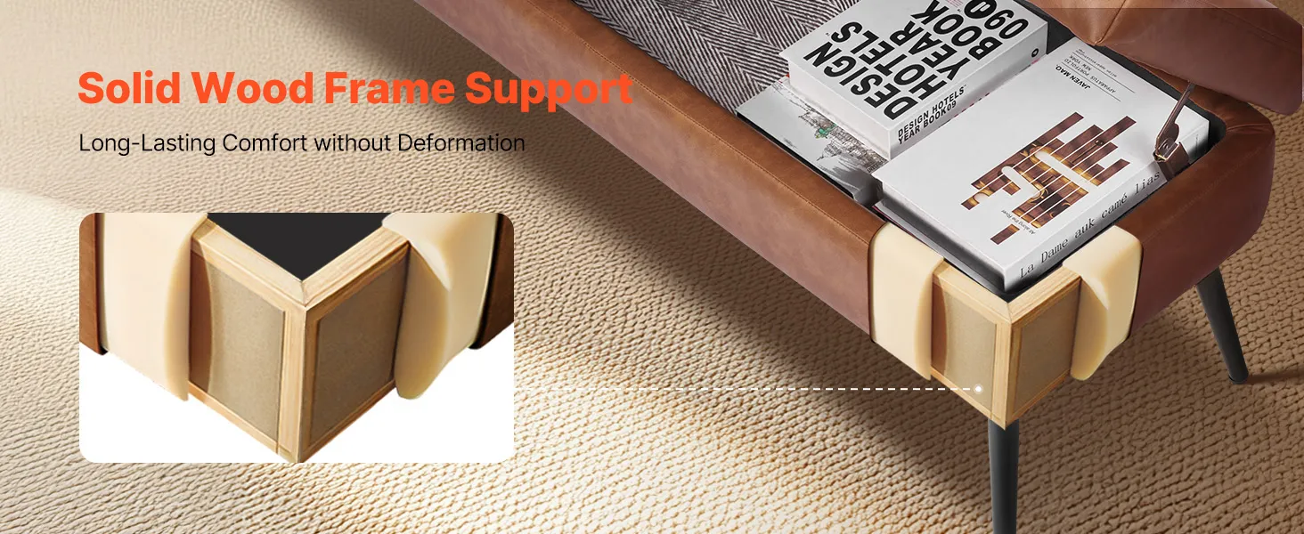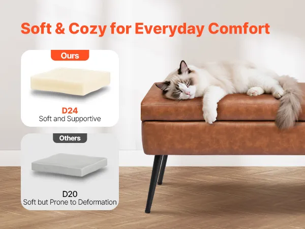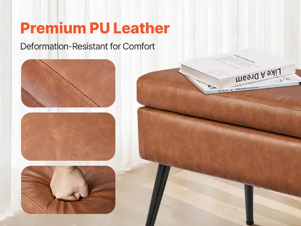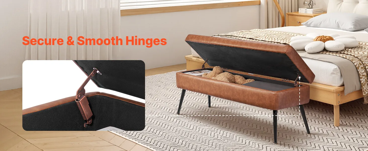 This PU leather bedroom bench features a hidden storage compartment, reliable weight capacity, and plush comfort—bringing both beauty and practicality together for a more organized and stylish bedroom.