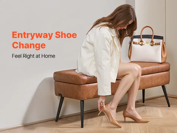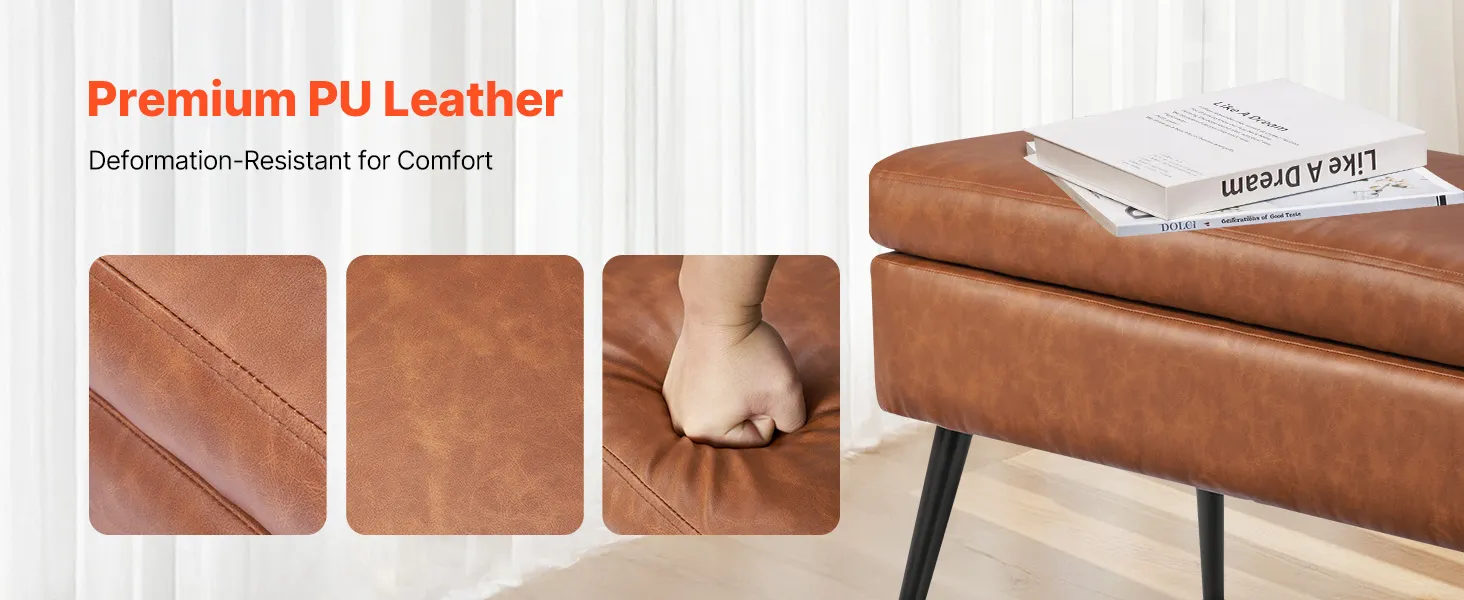 VEVOR Leather Storage Ottoman Bench, PU Leather Bench with Storage and Metal Legs, Upholstered Shoe Benches Seat for Entryway, Modern End of Bed Benches for Living Room, Dining Room, Hallway, Brown
