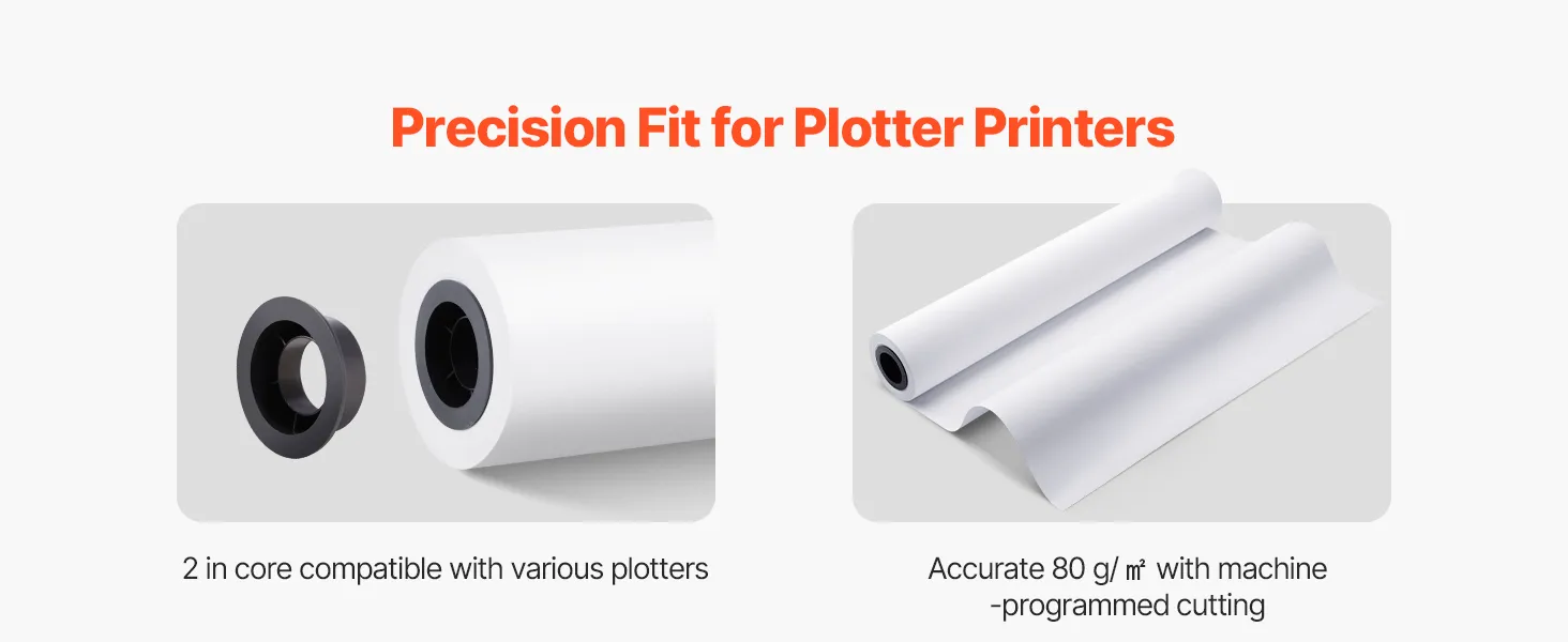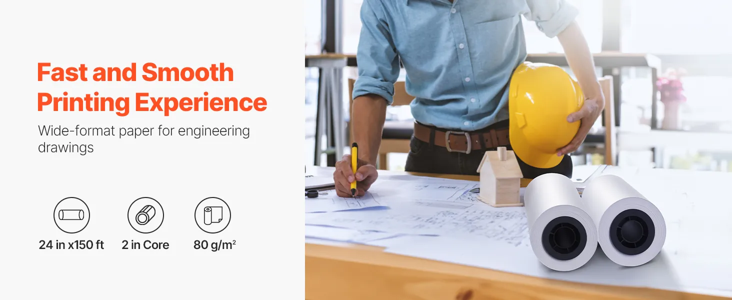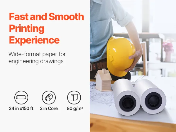 VEVOR Wide Format Paper, 609.6 mm x 45.7 m Plotter Roll, 2 Rolls CAD Bond Rolls with 50.8 mm Core, 80 GSM Plotter Roll Rolls, for CAD Drawings, Engineering Plans, GIS Maps, and Architectural Designs