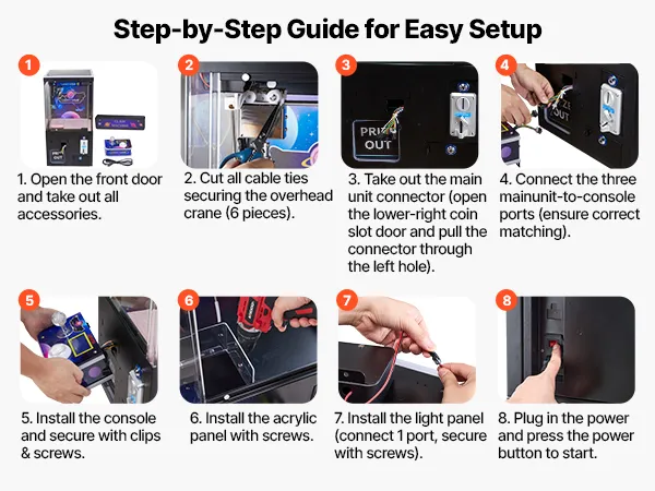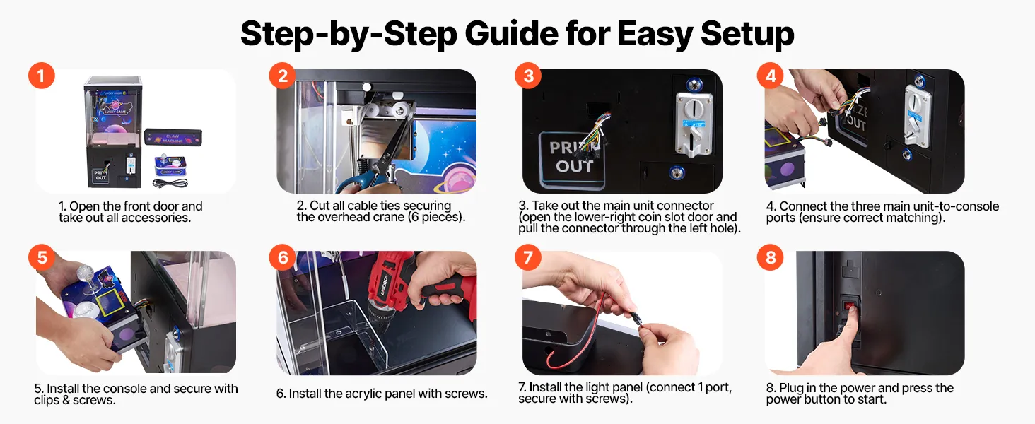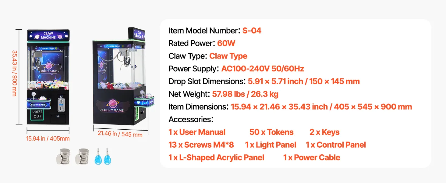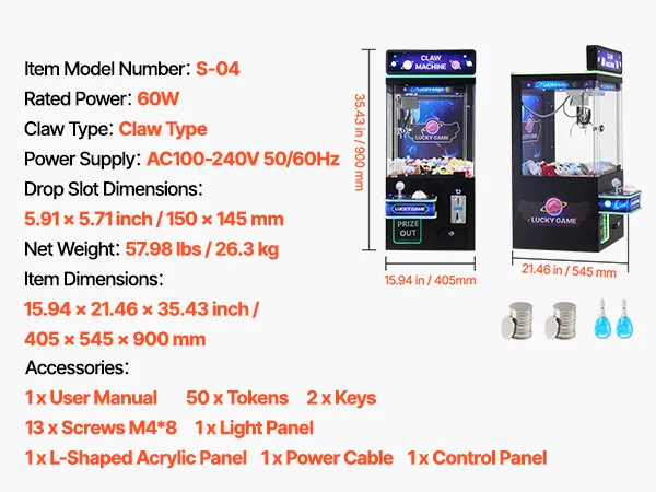 The claw crane machine comes with a detailed instruction manual and all necessary parts, allowing even beginners to assemble quickly and start enjoying endless fun.