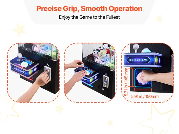 The control panel is easy to use, letting players precisely maneuver the steel claw to grab toys of various sizes. Offers both challenge and reward, making it a fun, entertaining choice for home or commercial play.