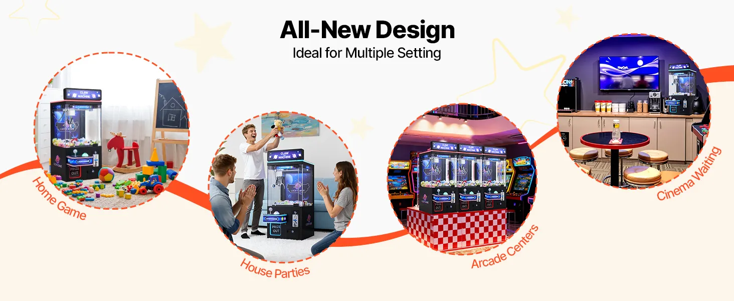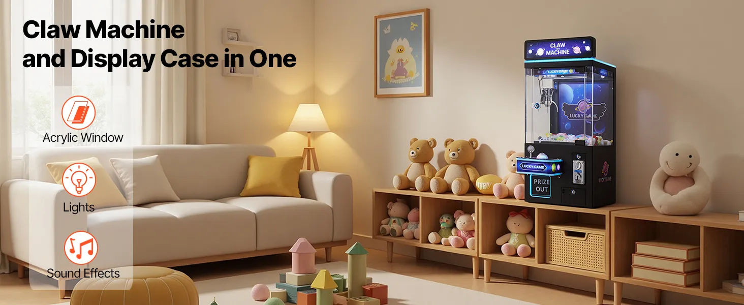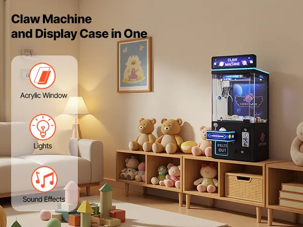 With a stylish new appearance, this toy claw machine fits seamlessly in home game rooms, parties, arcades, or cinema waiting areas, adding a fun and eye-catching highlight to any space.