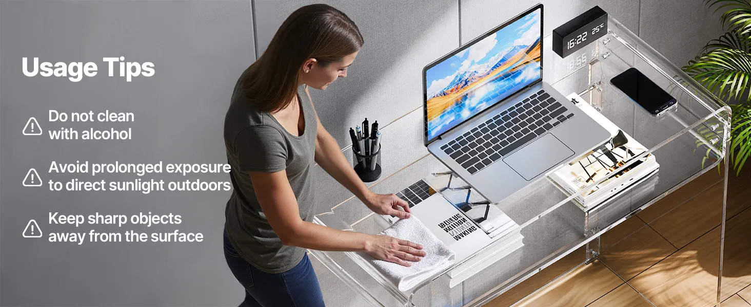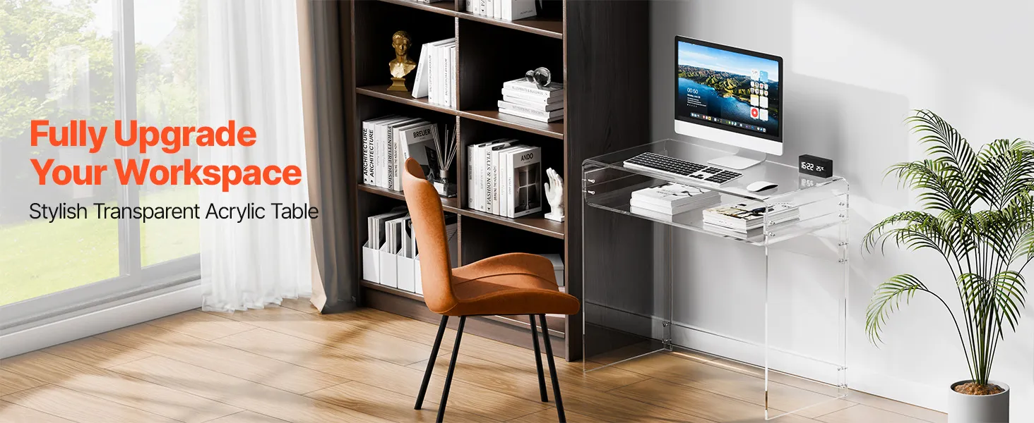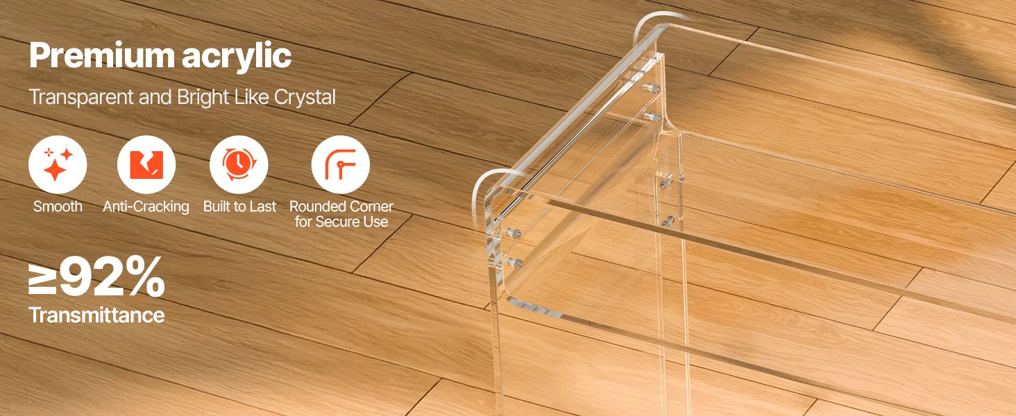 Stylish acrylic table made from premium clear acrylic, featuring a crystal-like transparent design that complements any home décor. With a thick tabletop and sturdy legs, this modern table provides strong support and stability for everyday use.